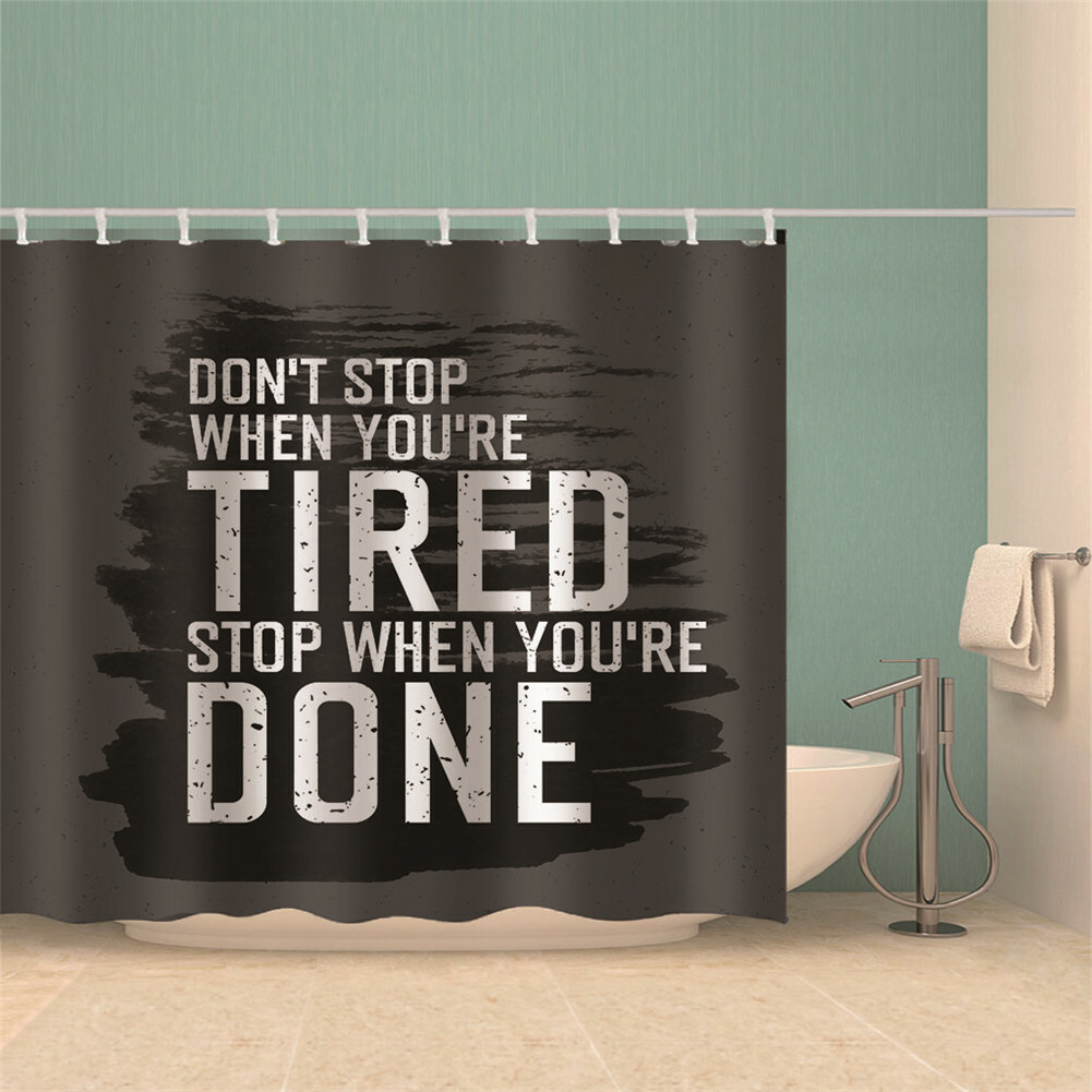 Gray Letters Map Stand 3D Shower Curtain Waterproof Fabric Bathroom Decoration