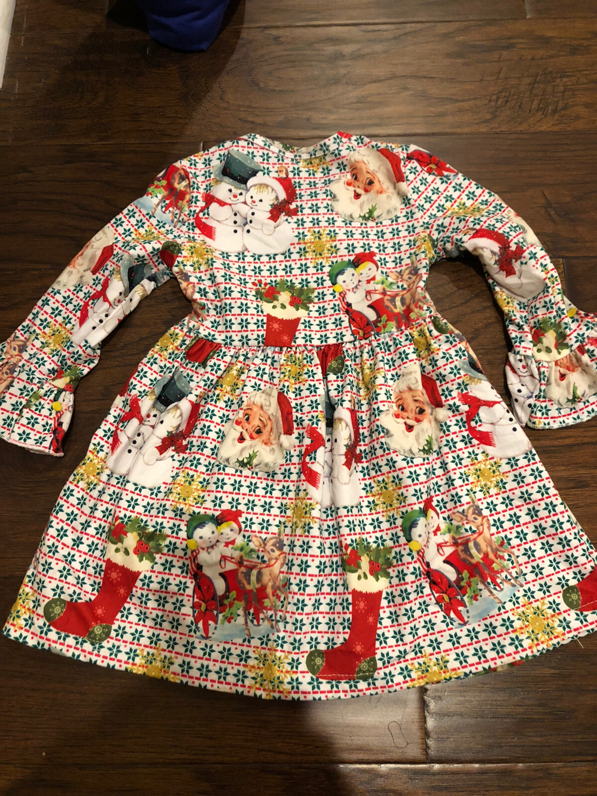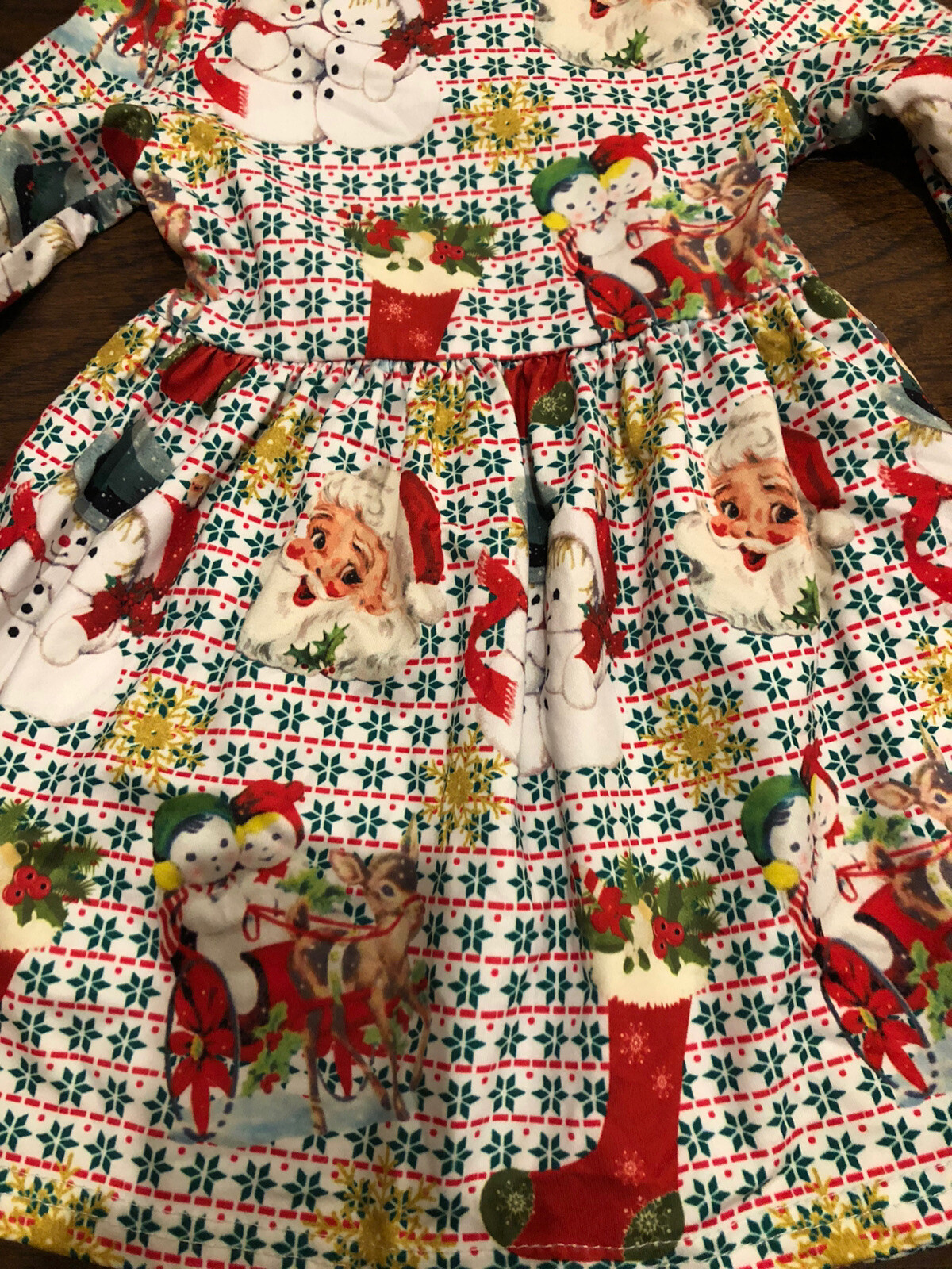 как выглядит Little Girls Christmas Dress With Vintage Images XS фото