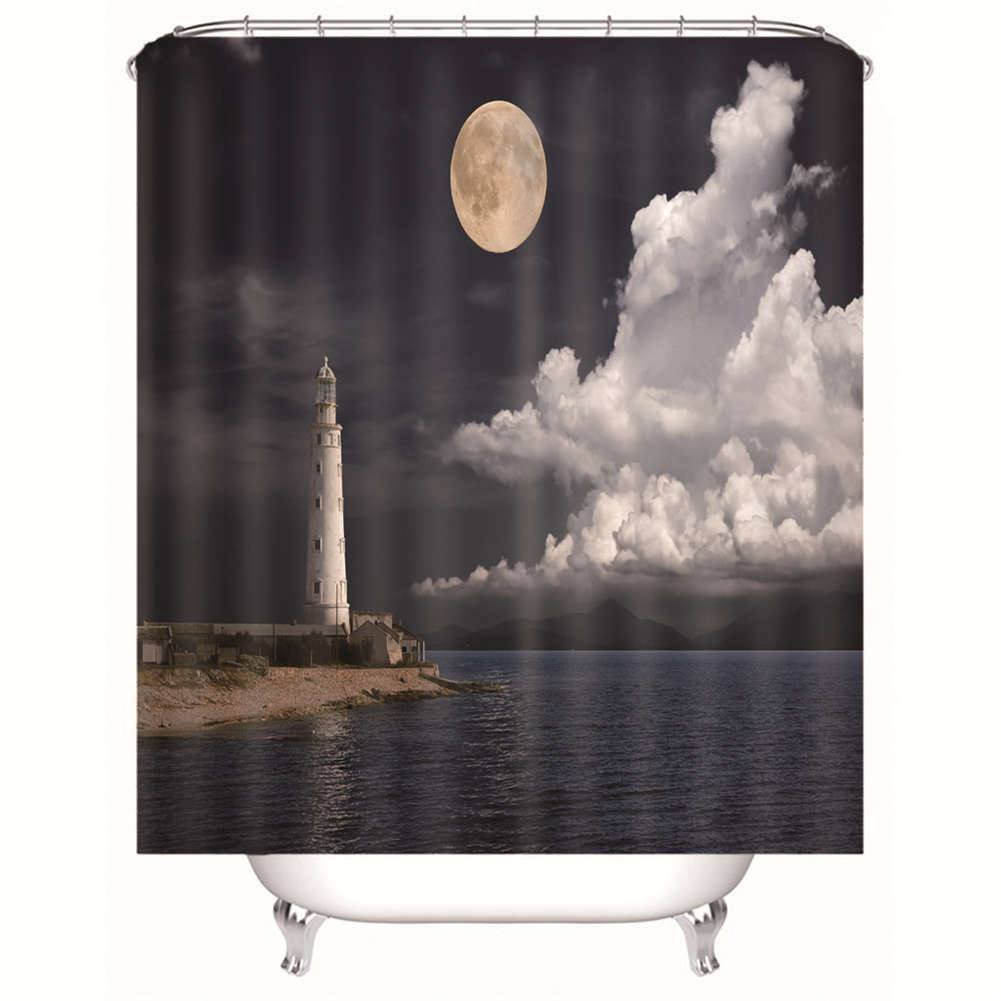 Gray Tree Tower Series 3D Shower Curtain Waterproof Fabric Bathroom Decoration
