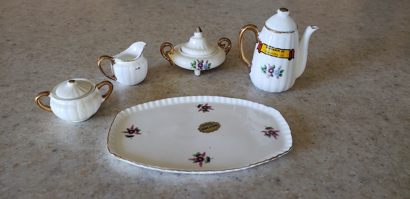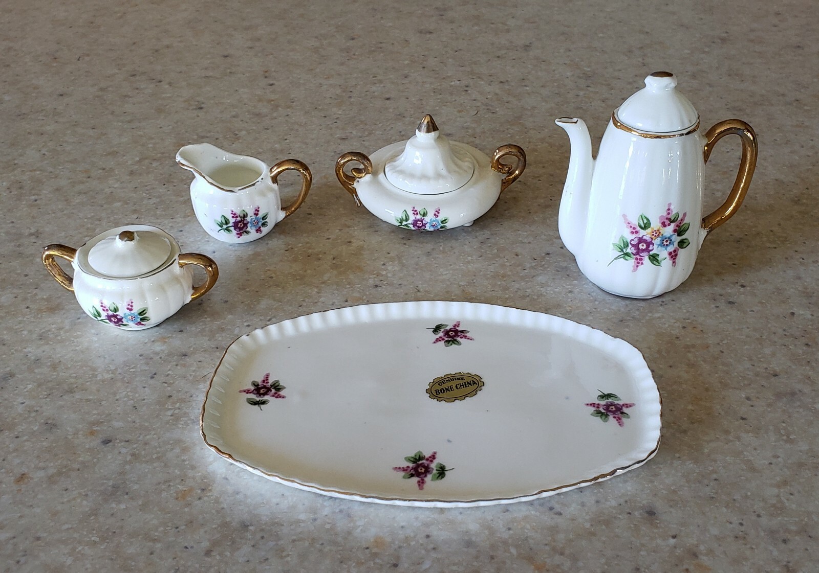 Vintage Enesco Miniature Bone China Tea Set 8 Pieces Dollhouse Decor Floral