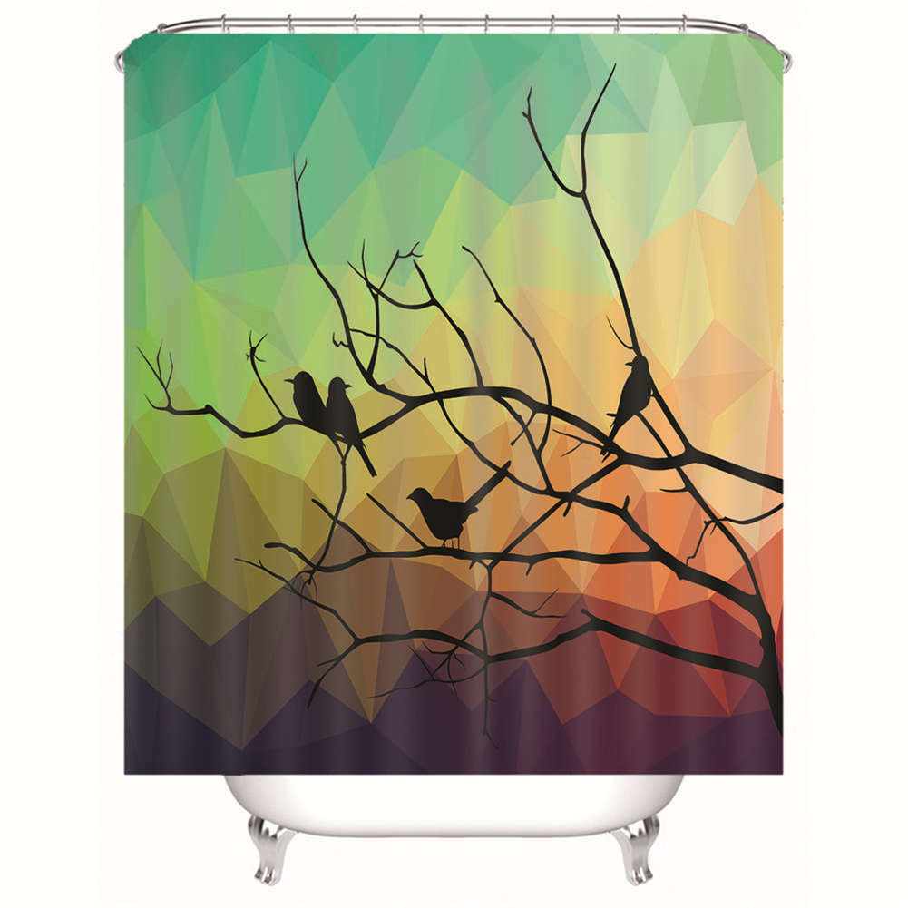 как выглядит Gray Clear Branches 3D Shower Curtain Waterproof Fabric Bathroom Decoration фото