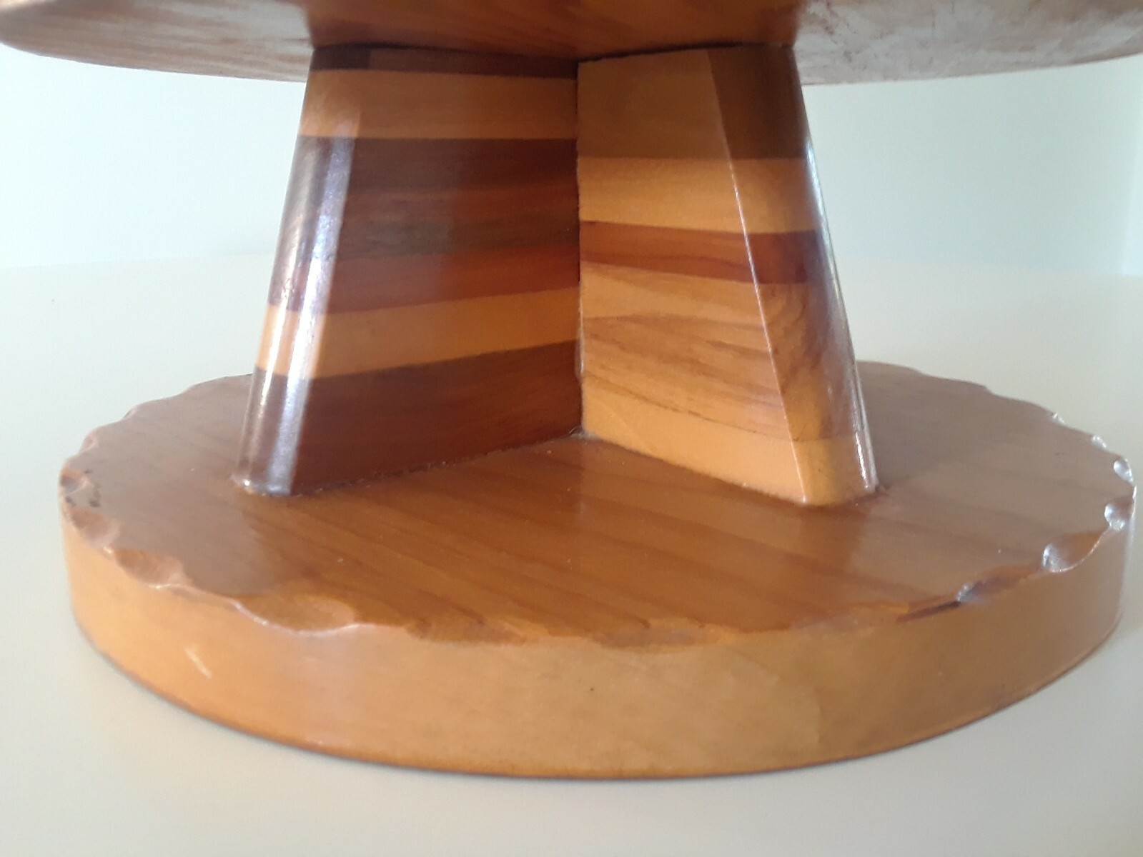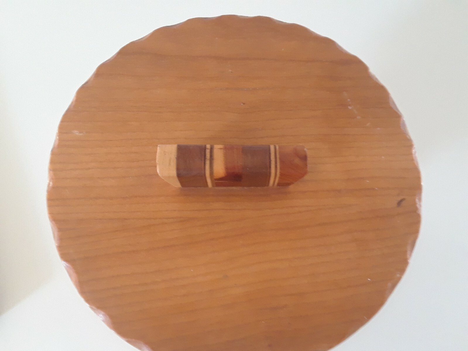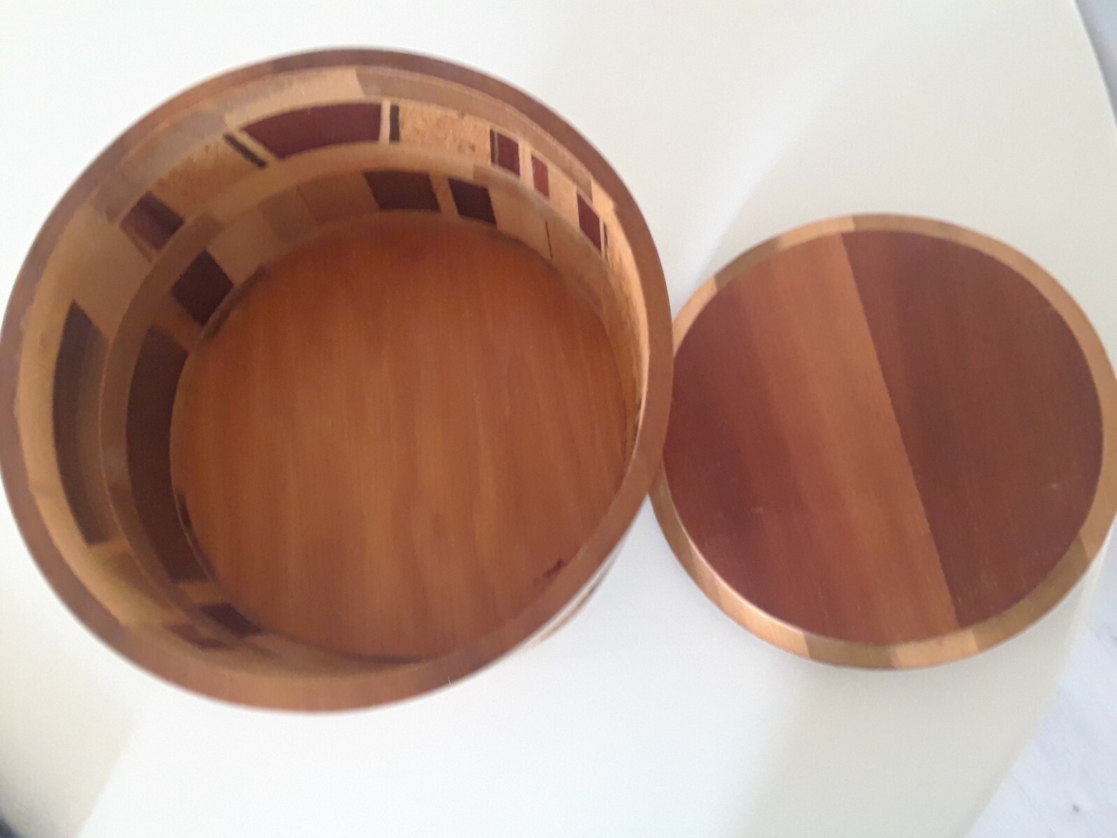как выглядит VINTAGE HANDMADE MULTI WOOD TURNED INLAID ART PEDESTAL BOWL WITH LID фото