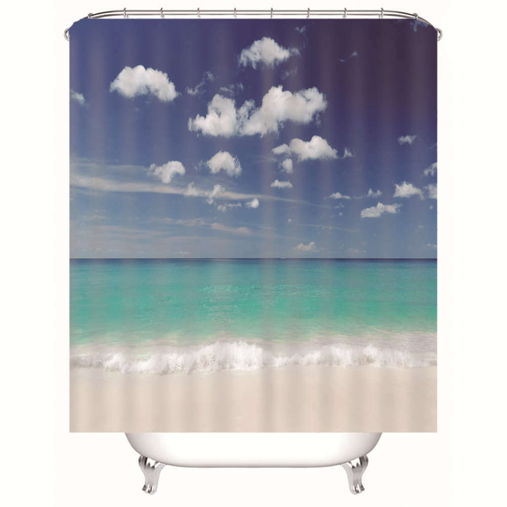 White Paper Oceans Sand 3D Shower Curtain Waterproof Fabric Bathroom Decoration