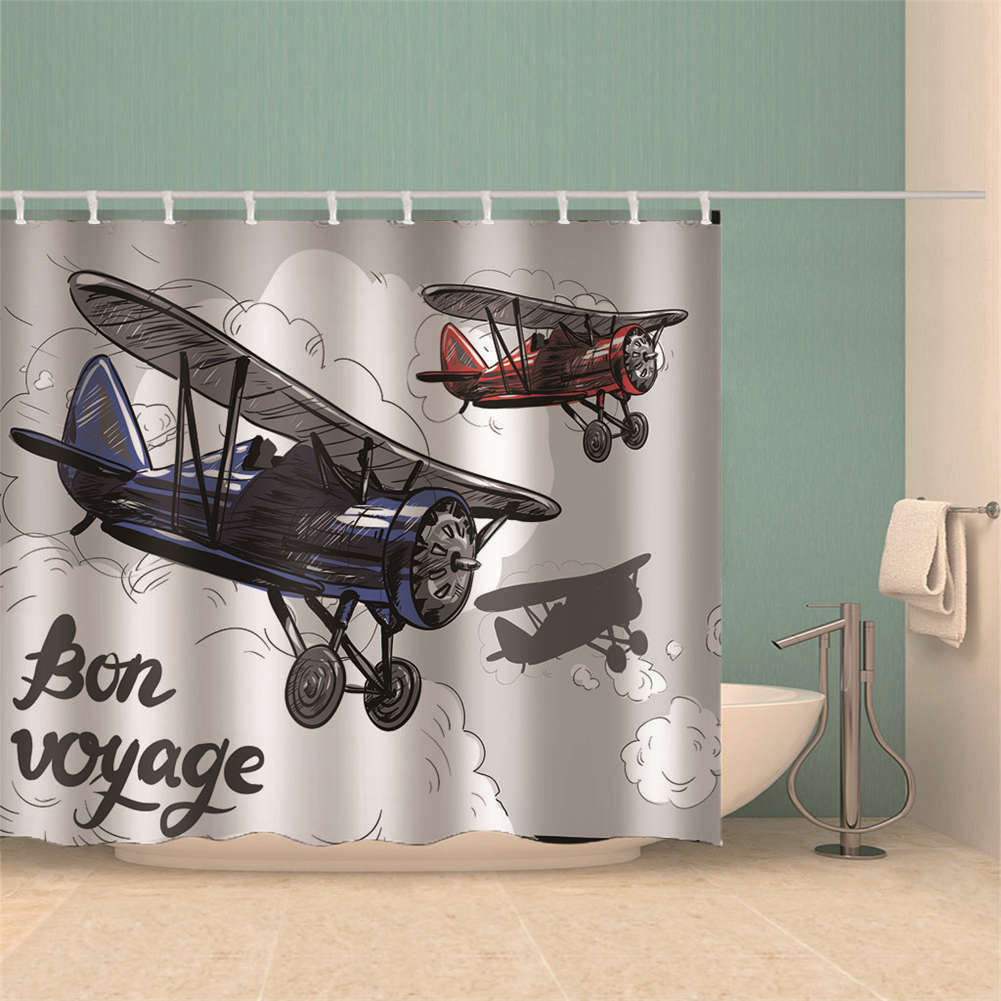как выглядит Blue Red Helicopter 3D Shower Curtain Waterproof Fabric Bathroom Decoration фото