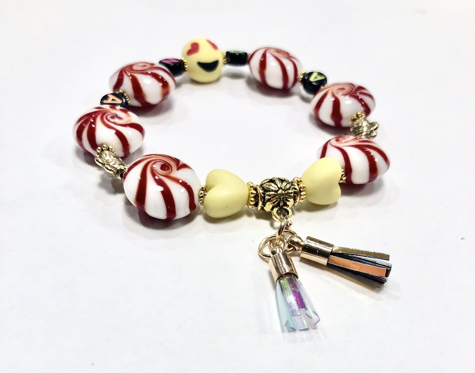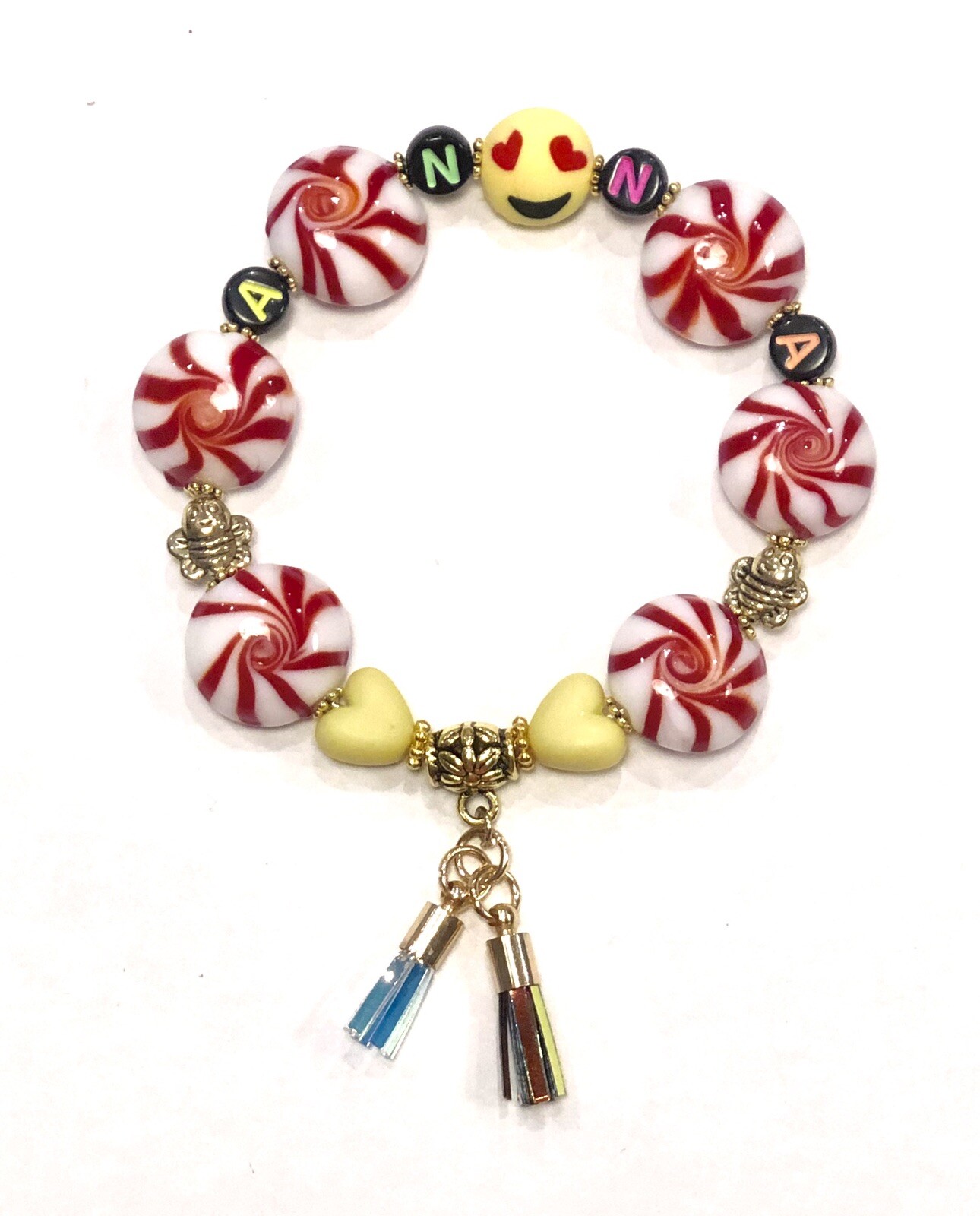 Girls Name Personalized Customized Glass Candy Resin Smiley Face Bracelet Charm