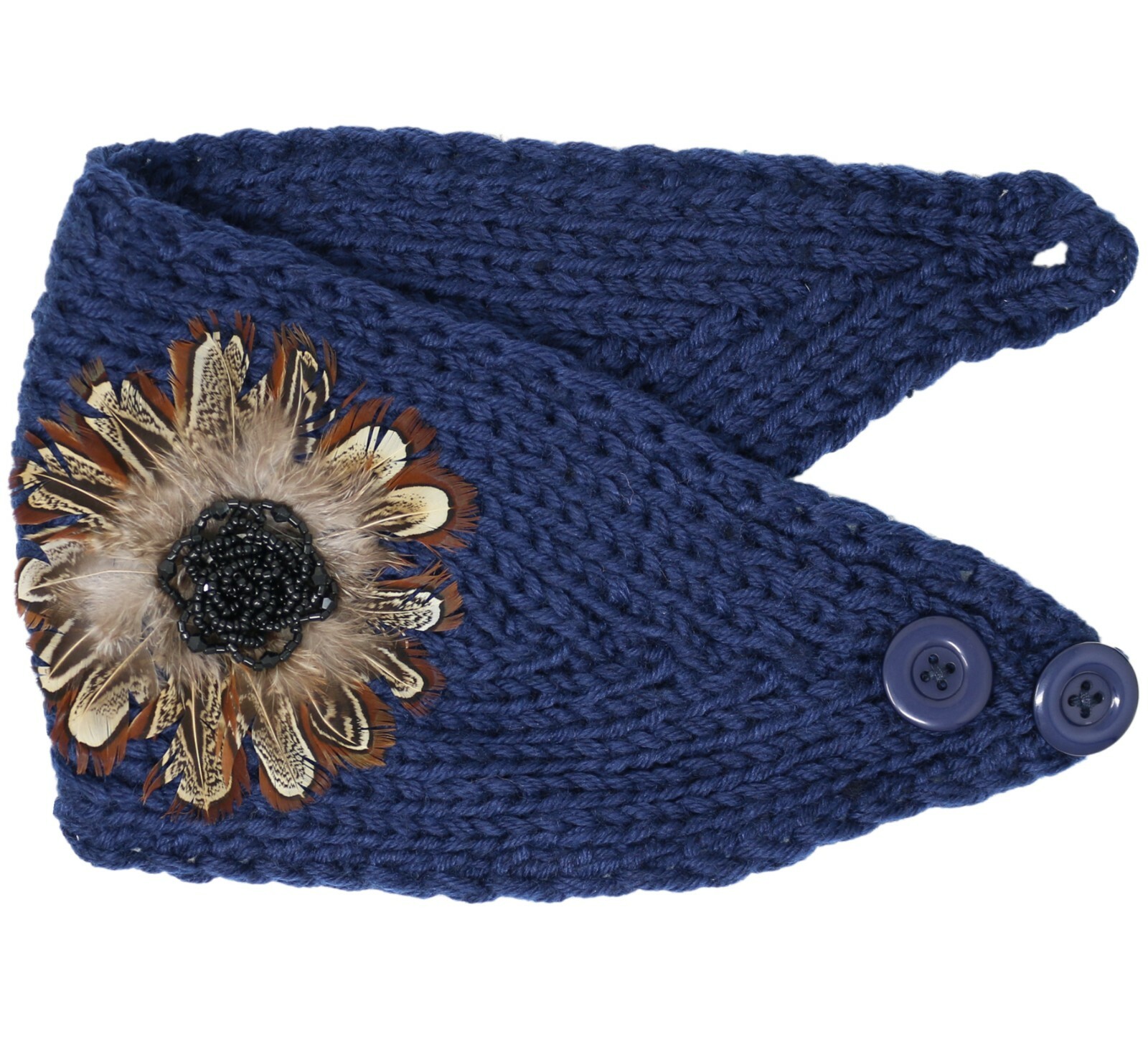 Winter Headband with Feather and Beads Flower Accent Ear Warmer