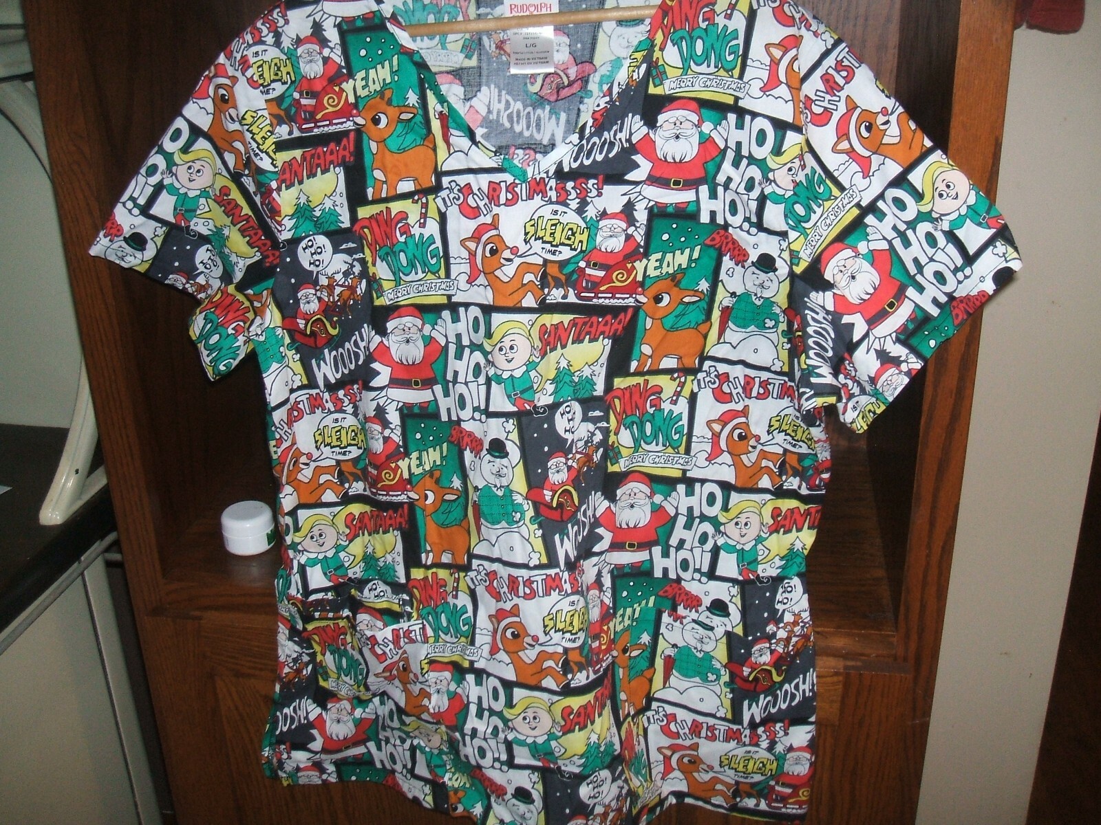 Rudolph the Red Nosed Reindeer Scrub Top Is It Sleigh Time Large