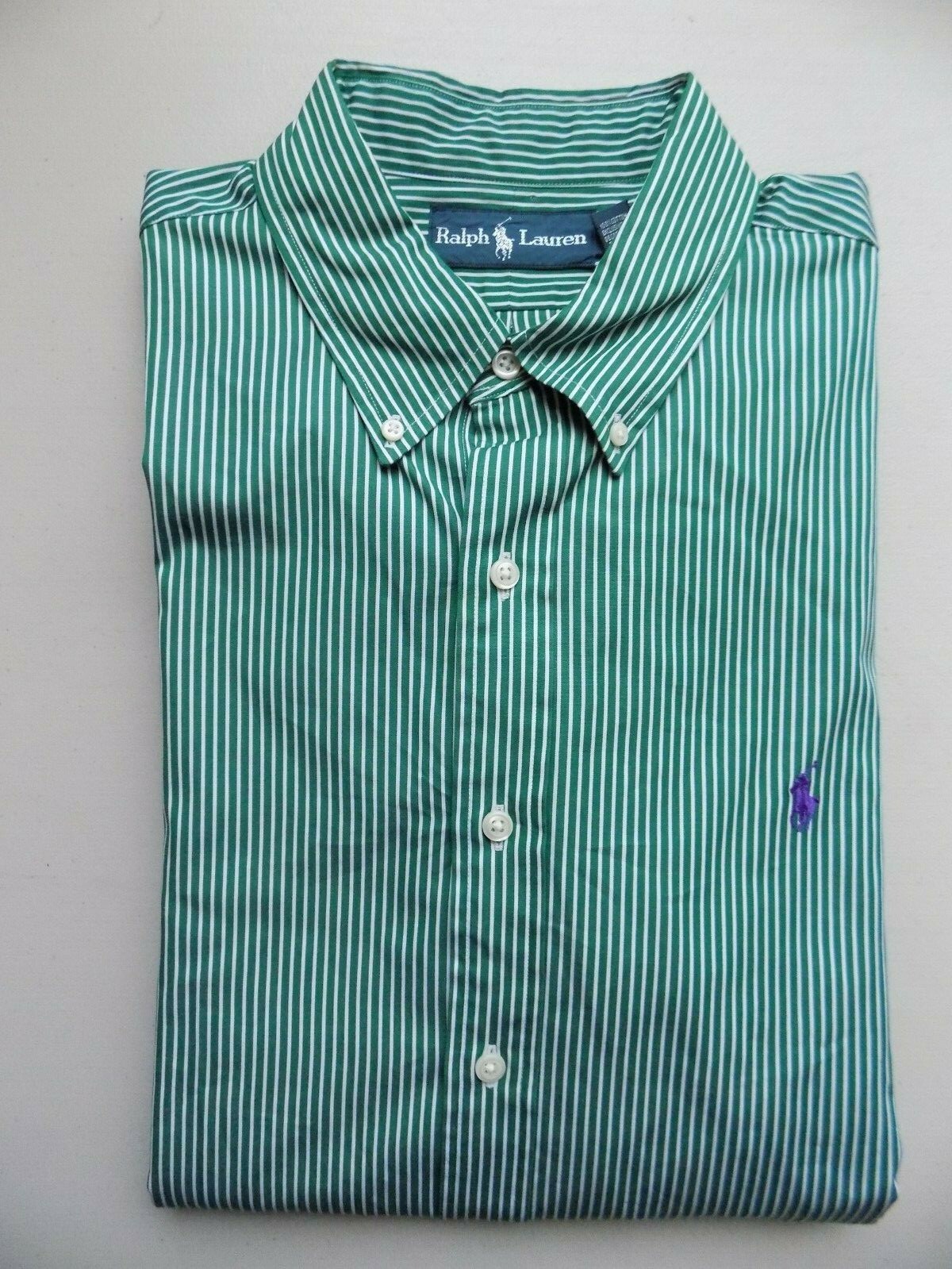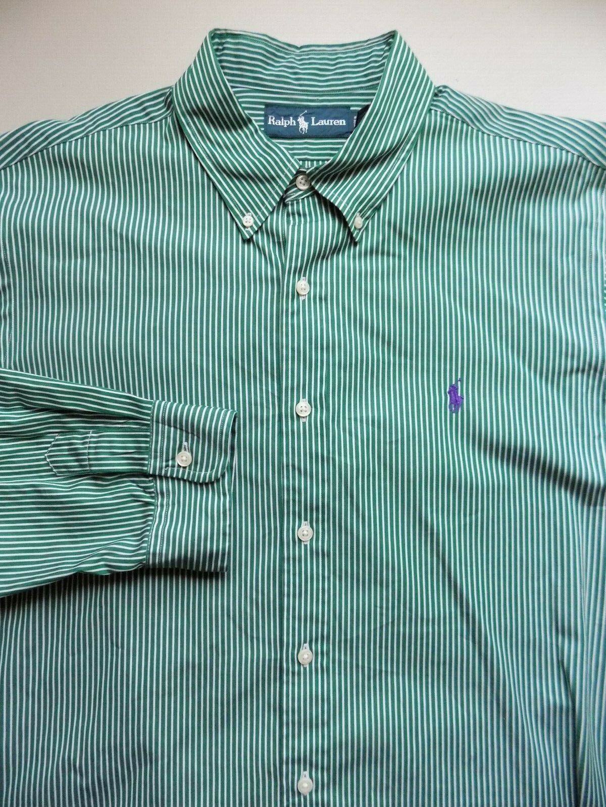 как выглядит RALPH LAUREN Button Front Shirt XL Green White Stripes Mens Classic LS фото