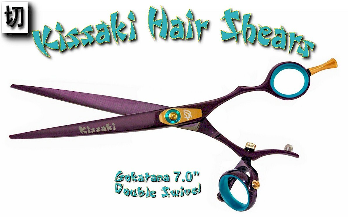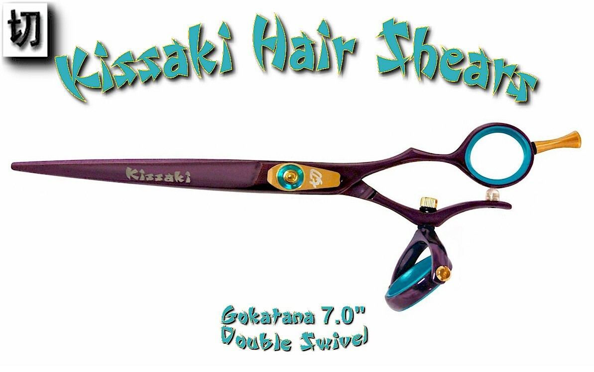 Kissaki 7.0 Gokatana Black Cherry Blue DOUBLE SWIVEL Hair Scissors Shears