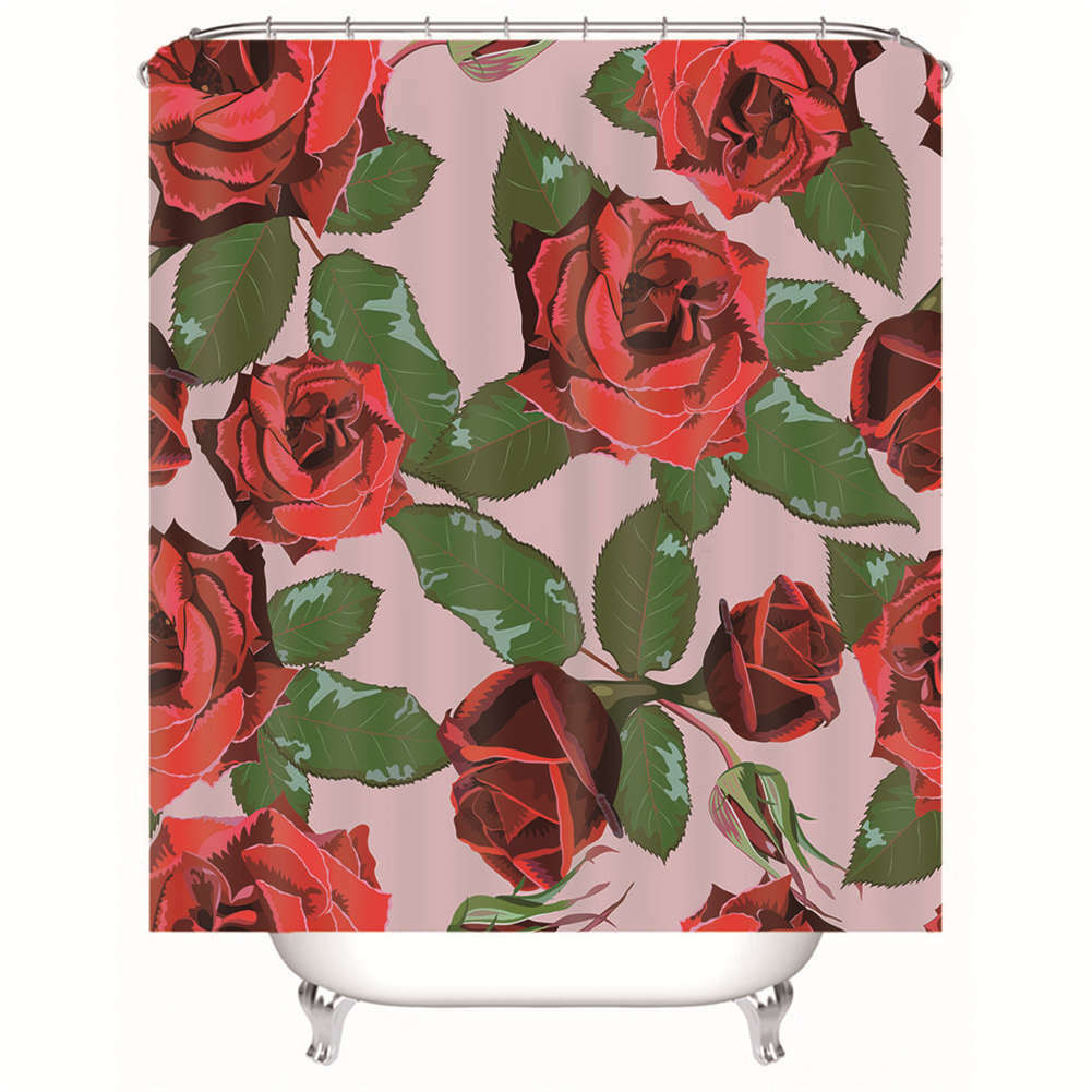 Nice Roses And Leaves 3D Shower Curtain Waterproof Fabric Bathroom Decoration
