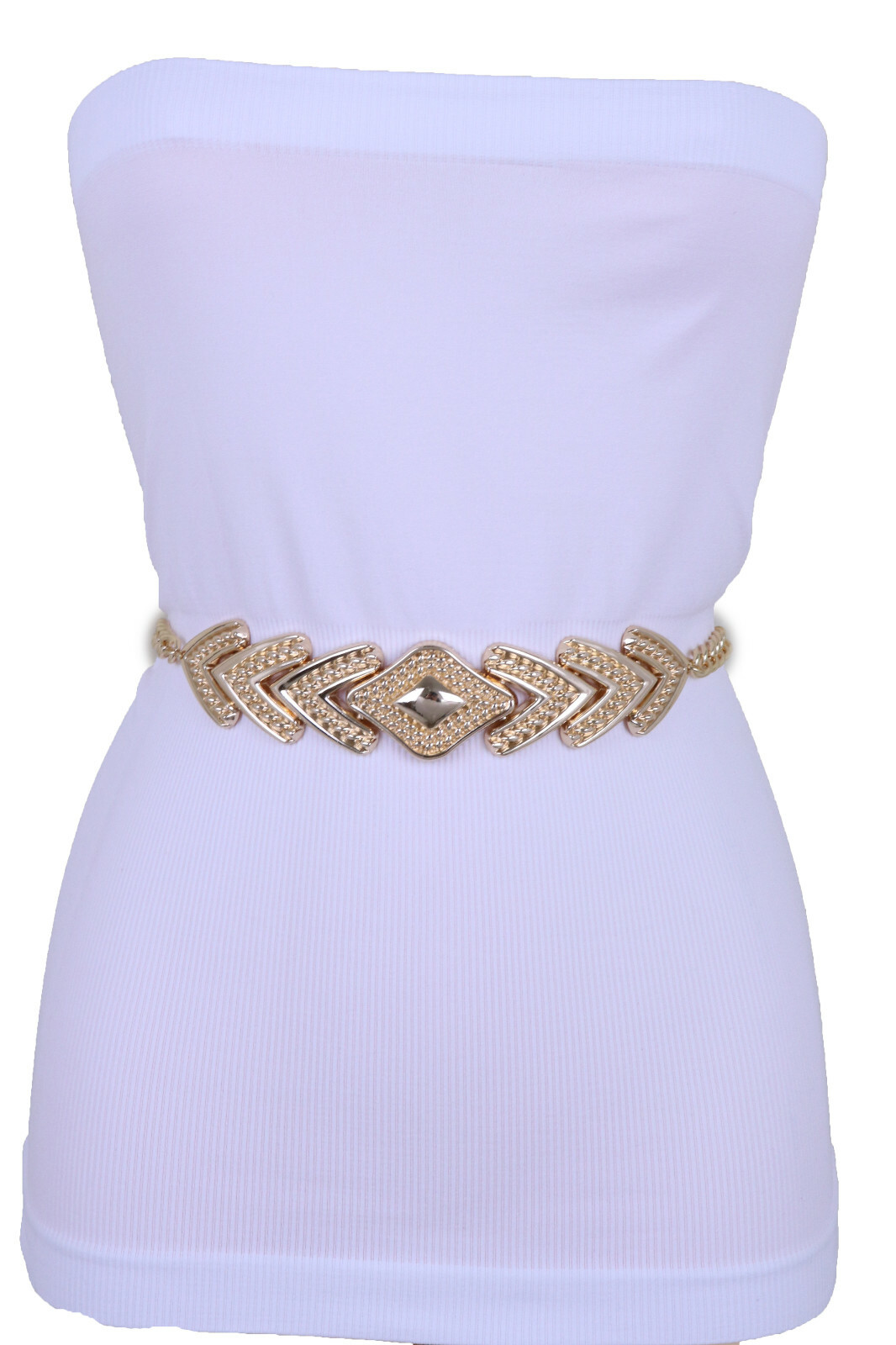 Women Jazzy Look Belt Gold Metal Chain Long Arrowhead Cool Charm Buckle M L XL