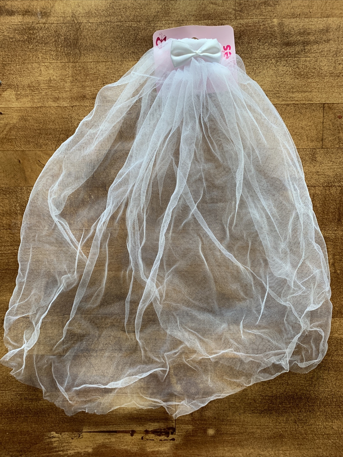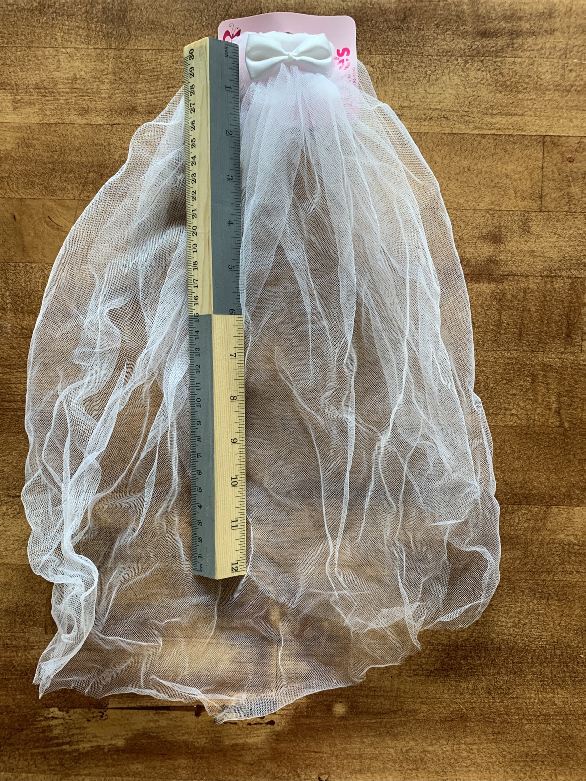 NWT CLAIRE S GIRLS WHITE TULLE VEIL WITH BOW COMMUNION FLOWER GIRL 15 W/ COMB