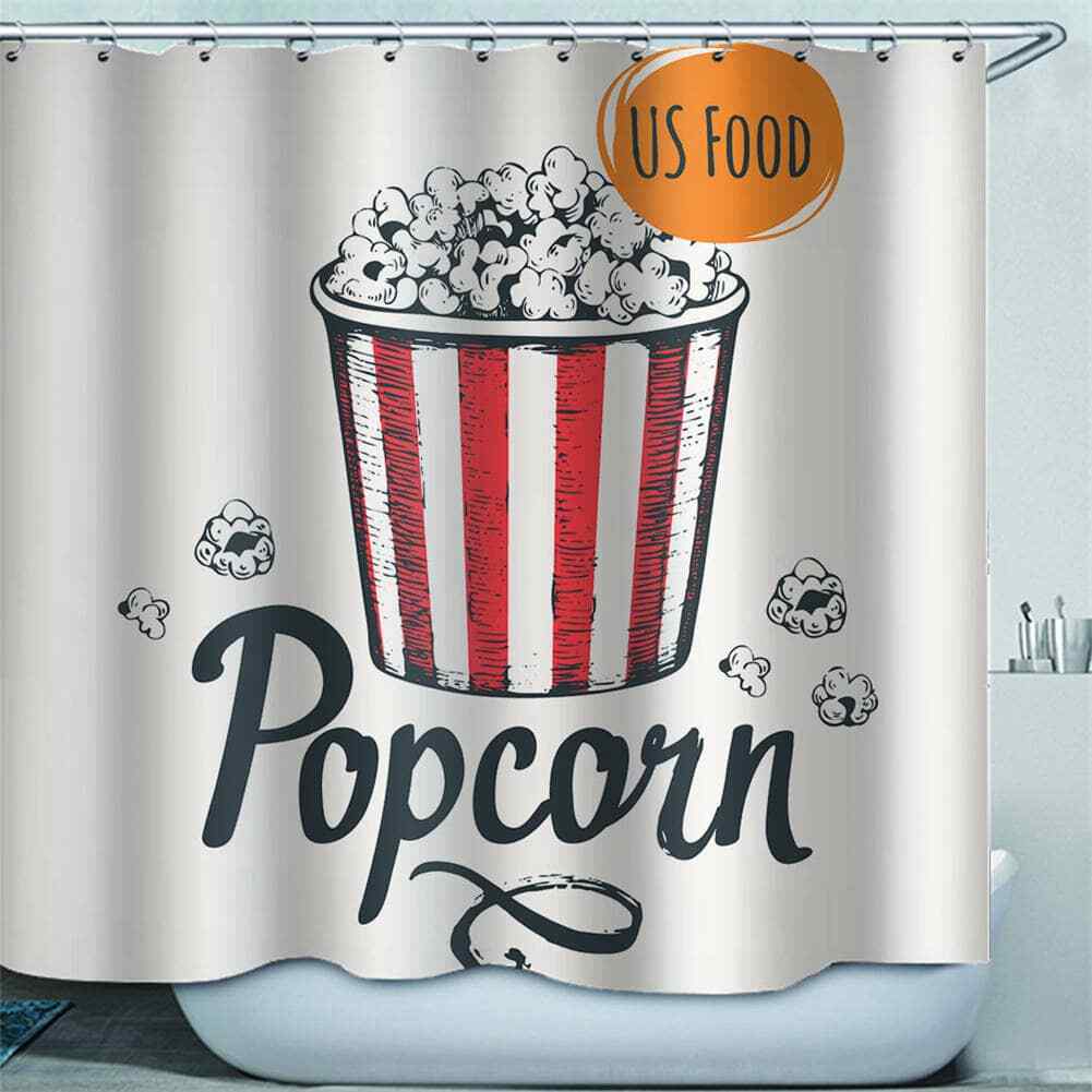 как выглядит Delicious Golden Popcorn 3D Shower Curtain Waterproof Fabric Bathroom Decoration фото