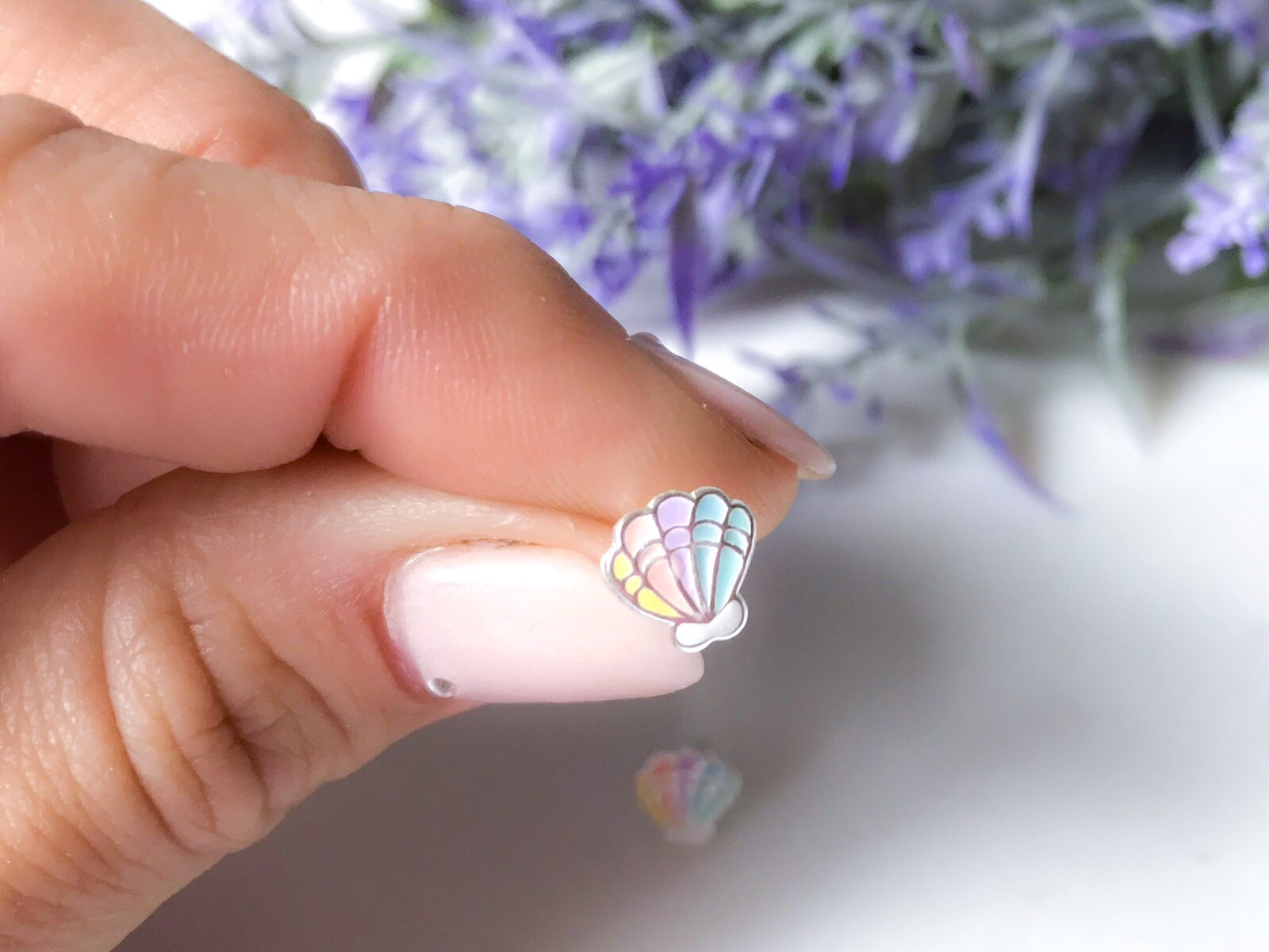 925 Sterling silver mermaid sea shell stud earrings for girls