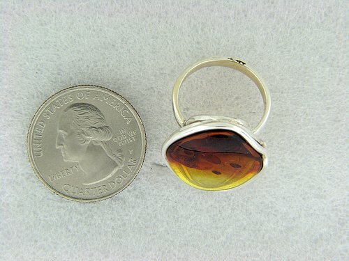 как выглядит Amber Dark and Light in Medium Ring set in Sterling Silver Handcrafted in Poland фото