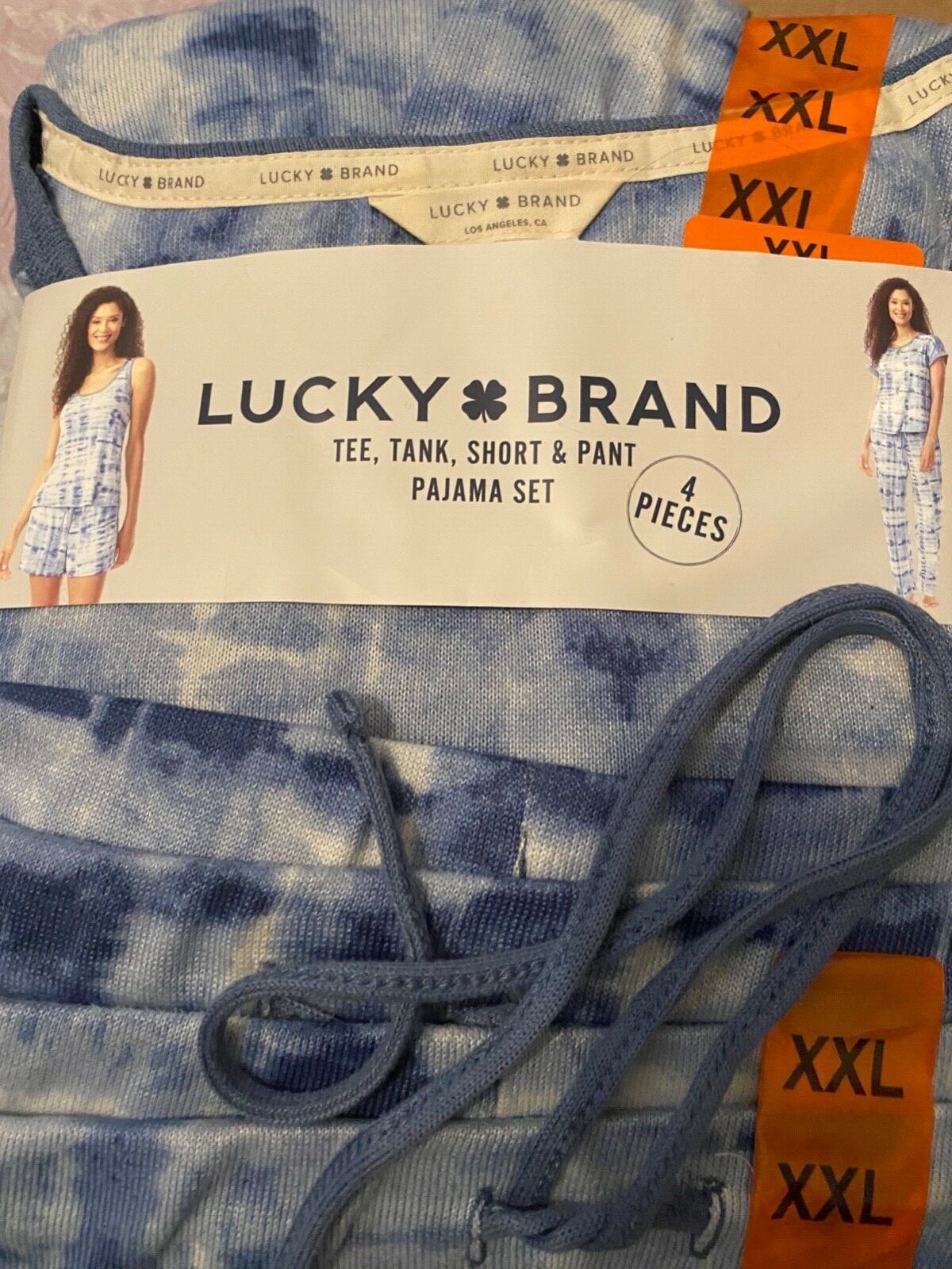 Lucky Brand Ladies 4 Piece Pajama Set Super Soft Knit Fabric Tied Blue XXL