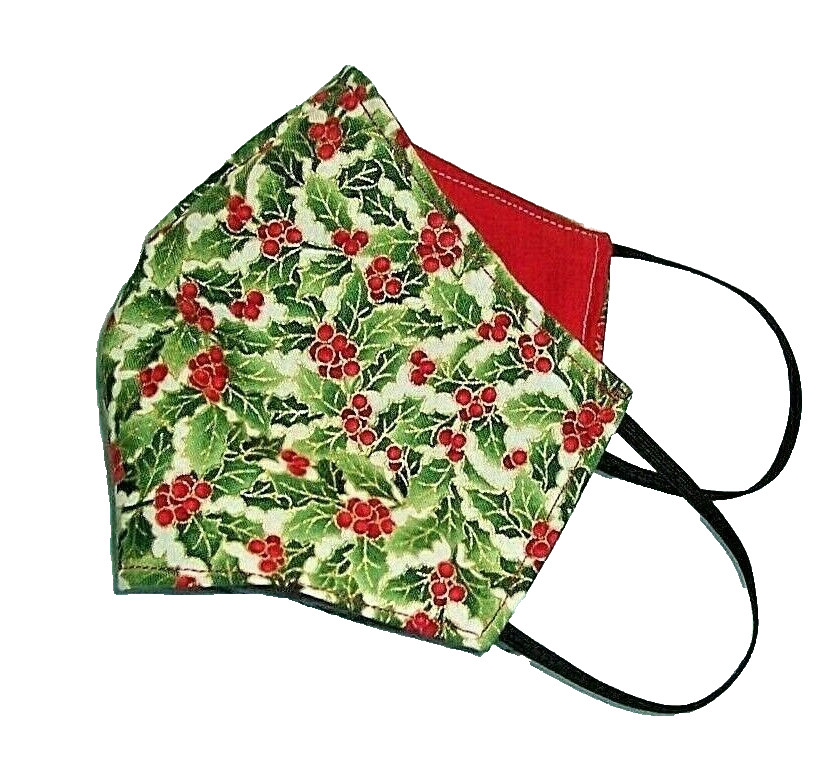 Christmas Holly Berries 2 layered Cotton Face Mask Washable Reusable Reversible