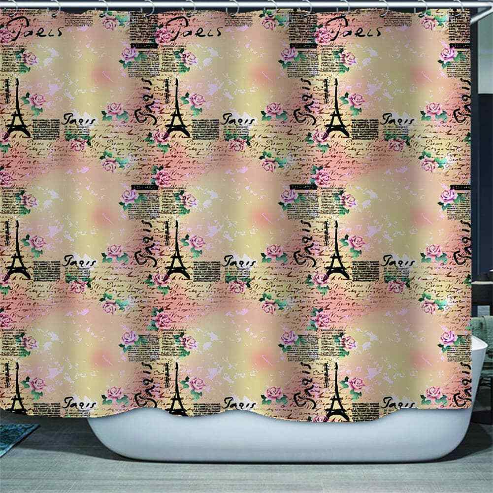 Nice Flower Color Tower 3D Shower Curtain Waterproof Fabric Bathroom Decoration