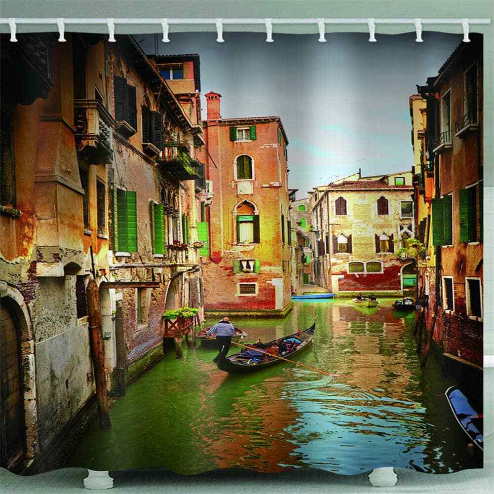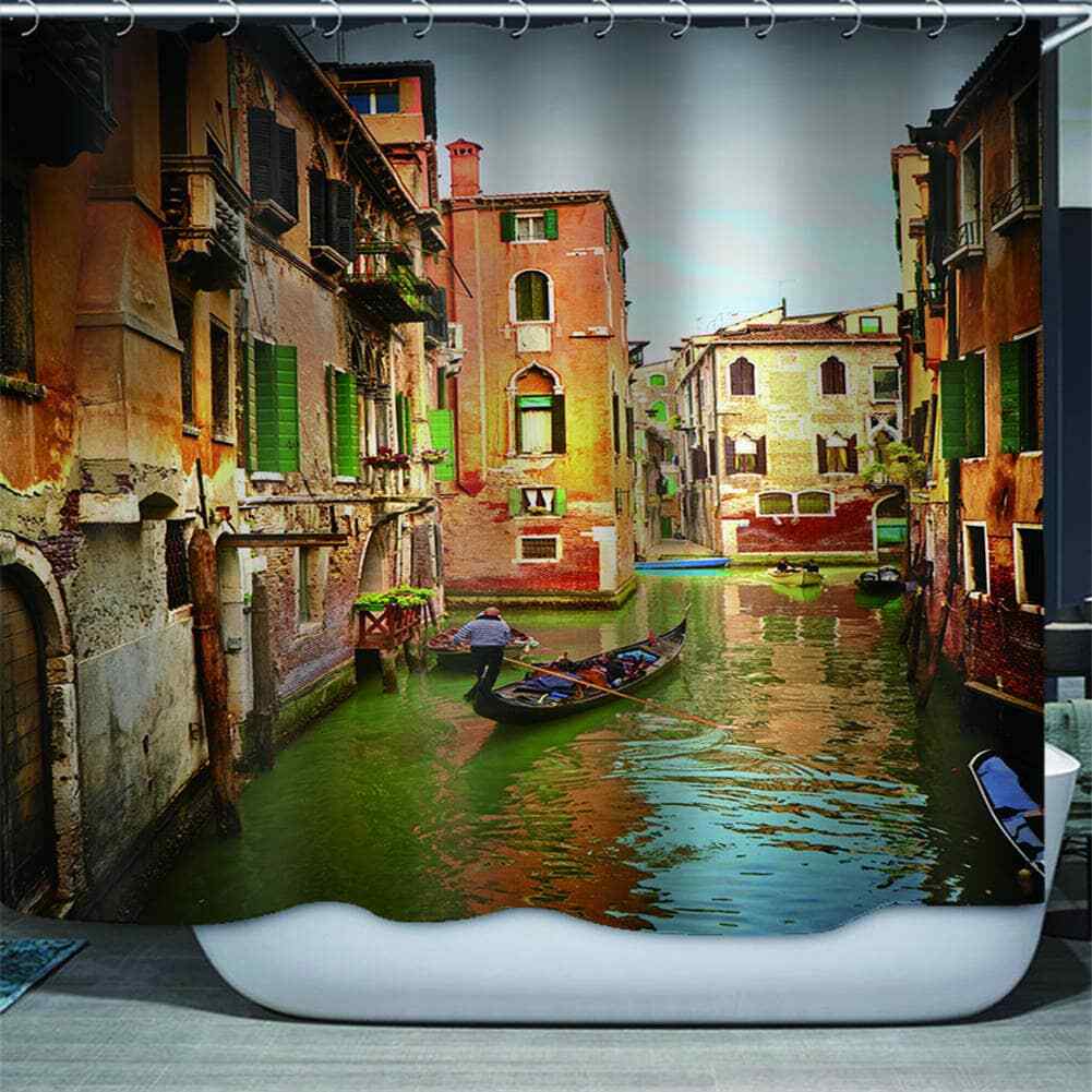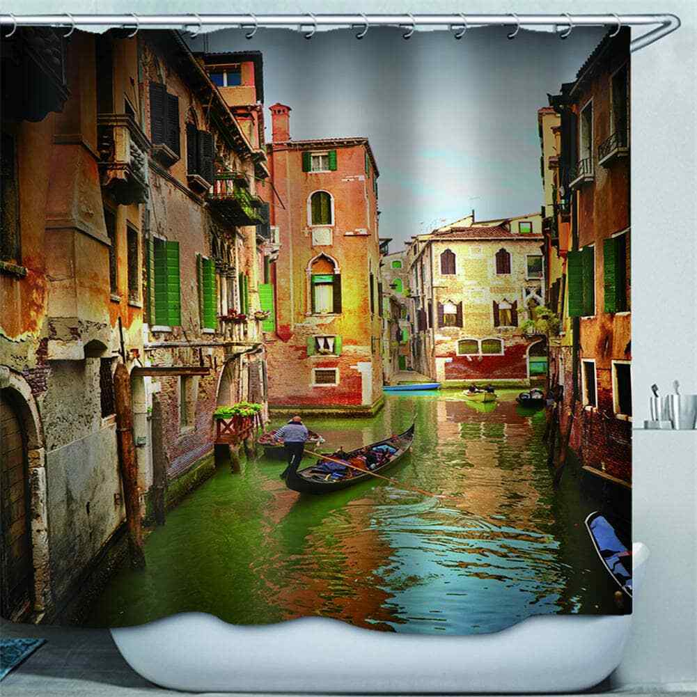 Jiangnan Waterside Town 3D Shower Curtain Waterproof Fabric Bathroom Decoration