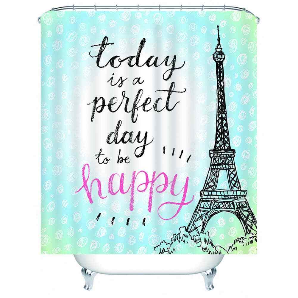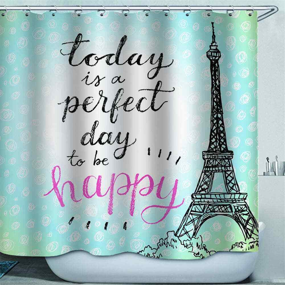 Today Is A Happy Day 3D Shower Curtain Waterproof Fabric Bathroom Decoration
