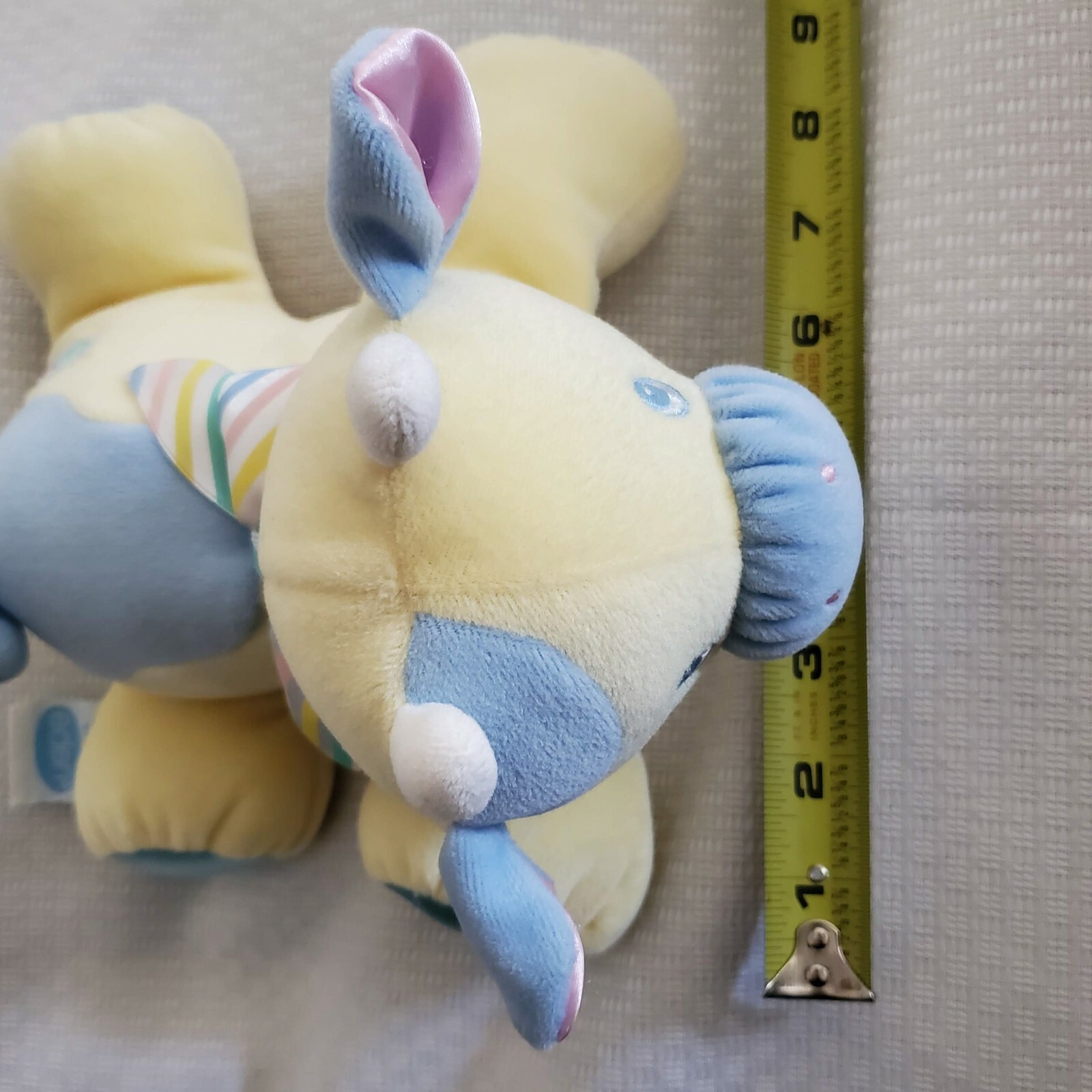 как выглядит Vintage Eden Velour Stuffed Plush Baby Cow Bull Toy Yellow Blue Satin фото