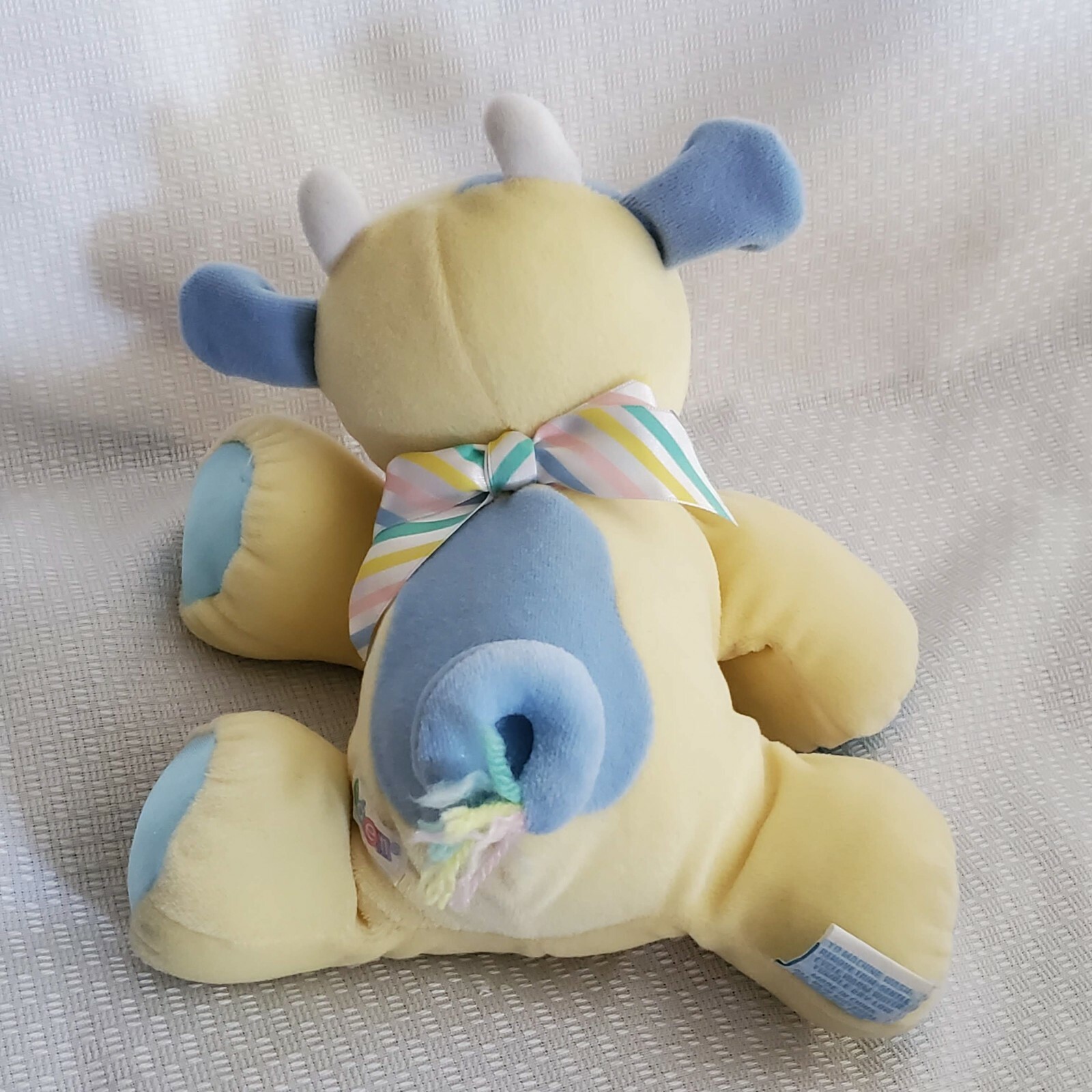 Vintage Eden Velour Stuffed Plush Baby Cow Bull Toy Yellow Blue Satin