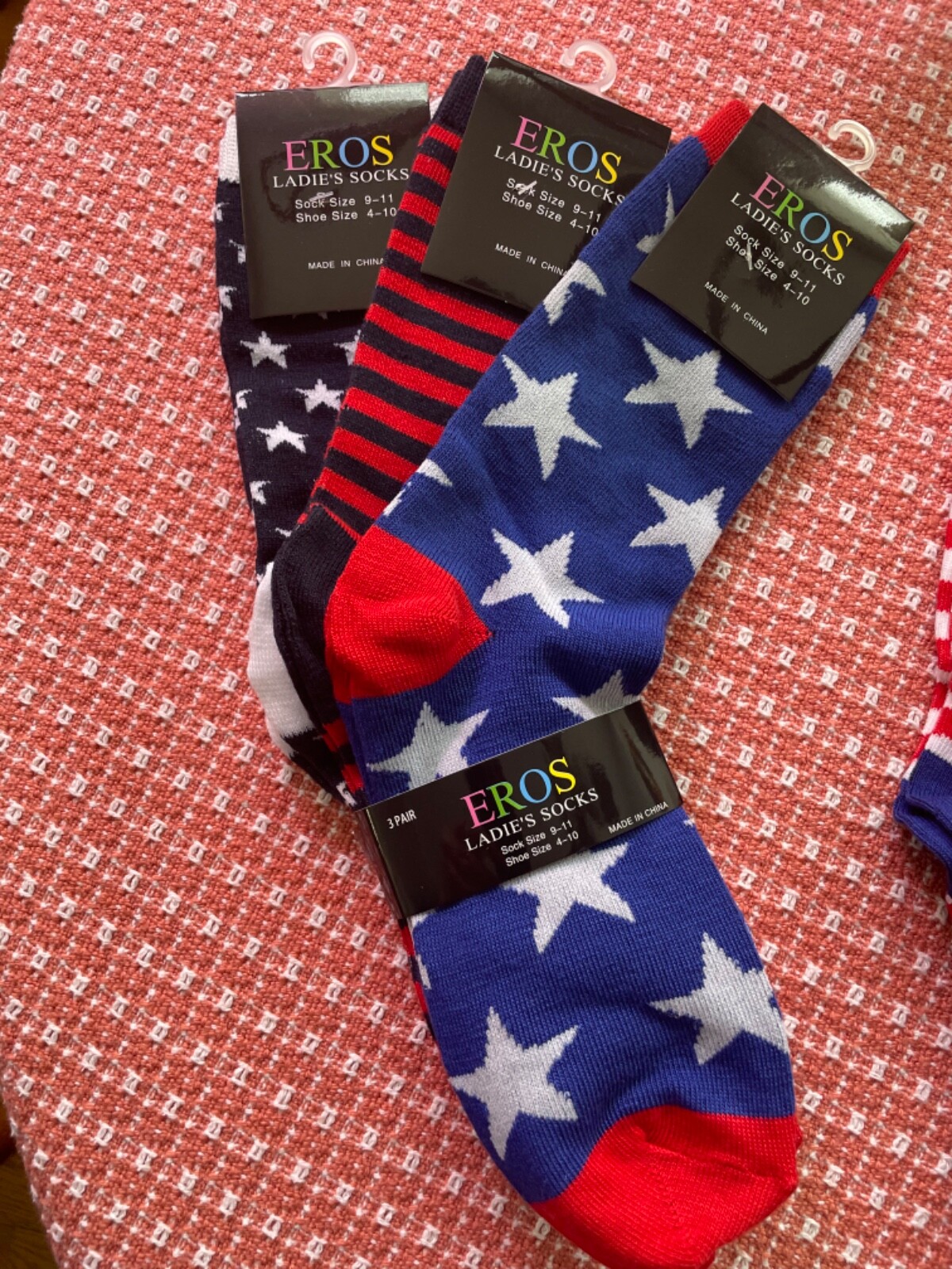 Patriotic Flag Socks Ladies 9-11 Lot 6 Pairs fun 4th July Red white blue NWT