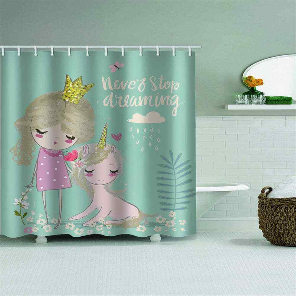 Lovely Princess And Pet 3D Shower Curtain Waterproof Fabric Bathroom Decoration