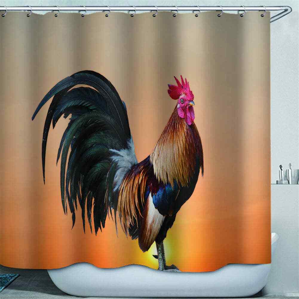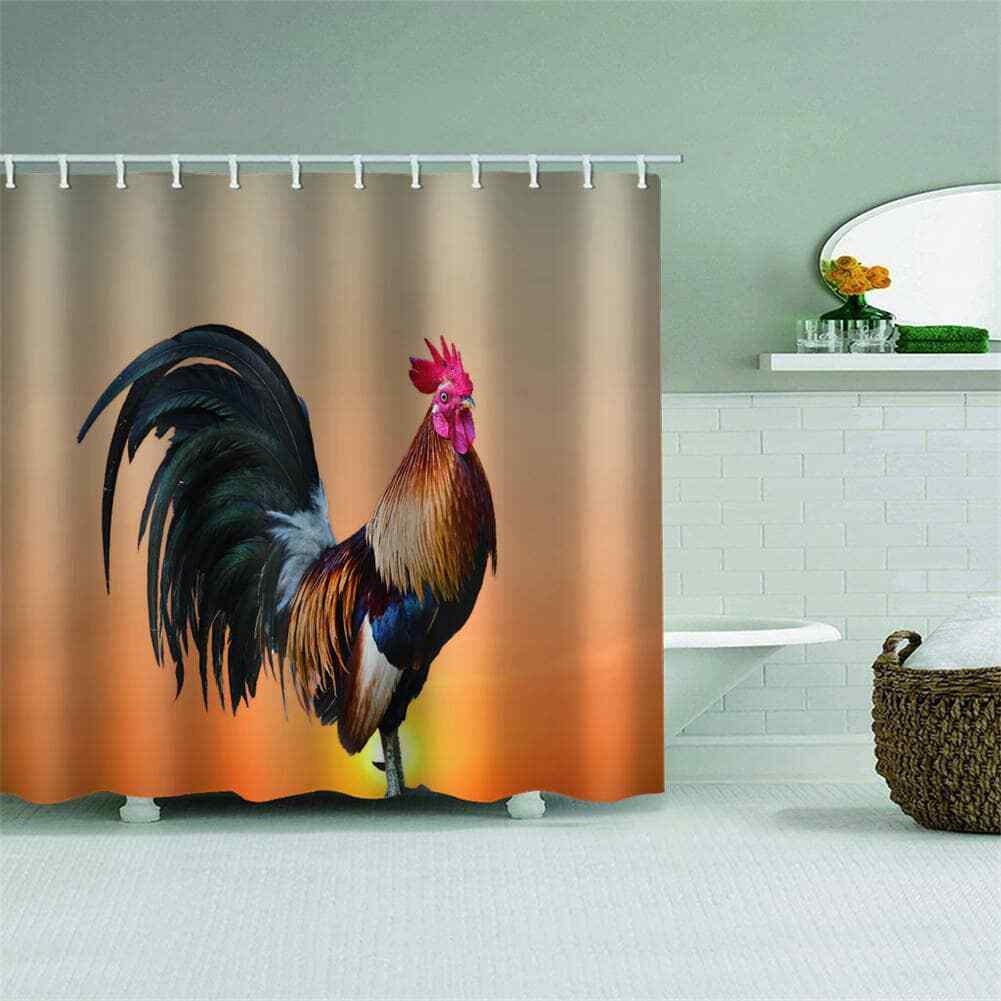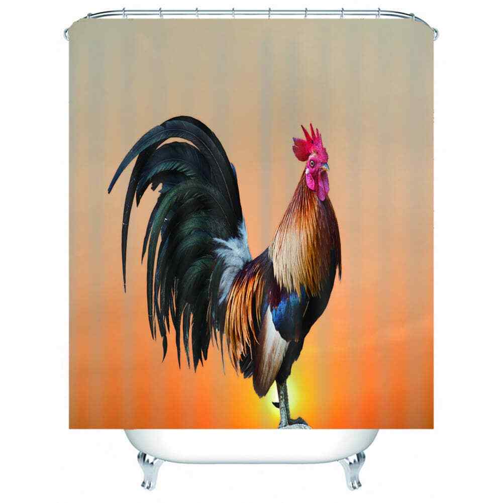 Roosters At Sunset 3D Shower Curtain Waterproof Fabric Bathroom Decoration