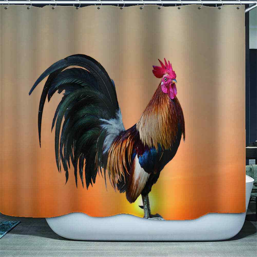 как выглядит Roosters At Sunset 3D Shower Curtain Waterproof Fabric Bathroom Decoration фото
