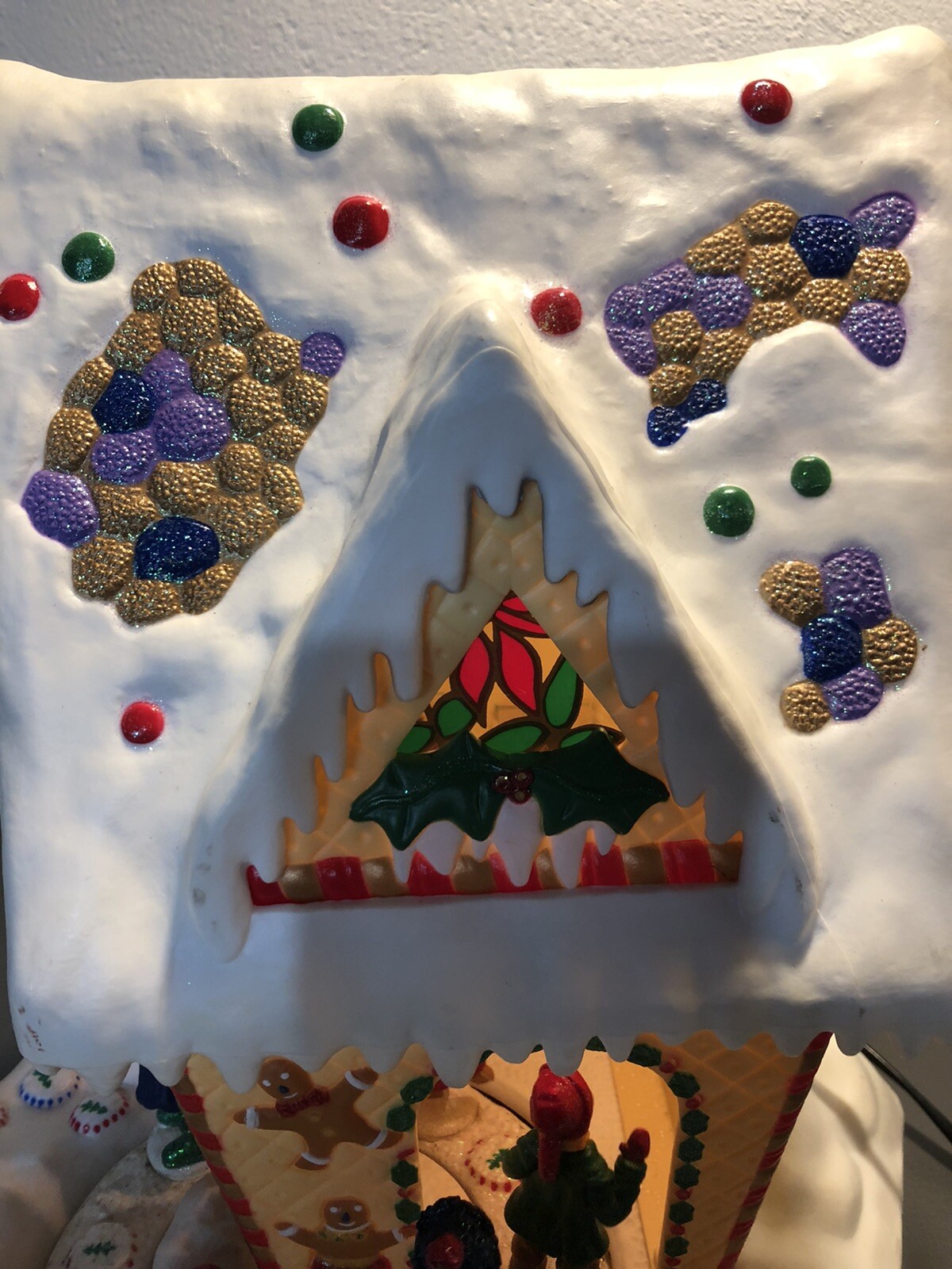 Vintage Christmas Gingerbread House Lit And Rotating Large 15h 12 W 15L