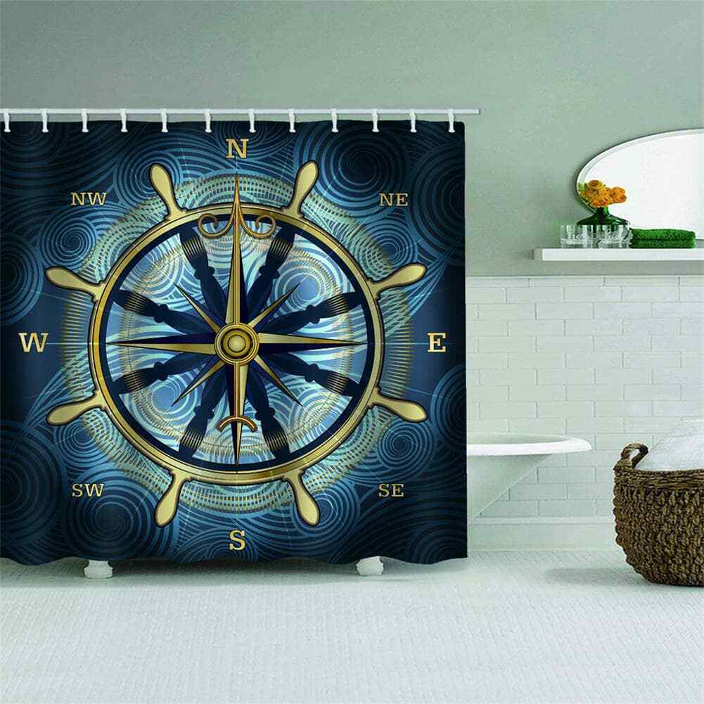 Steering Wheel Of Sea 3D Shower Curtain Waterproof Fabric Bathroom Decoration