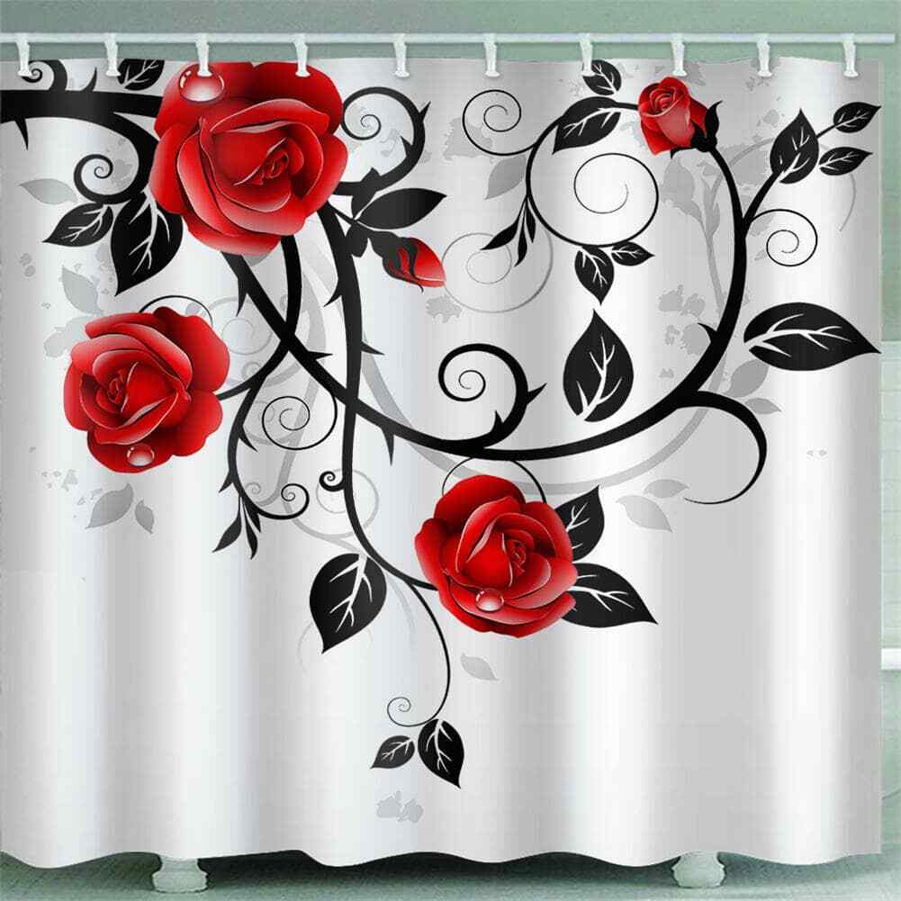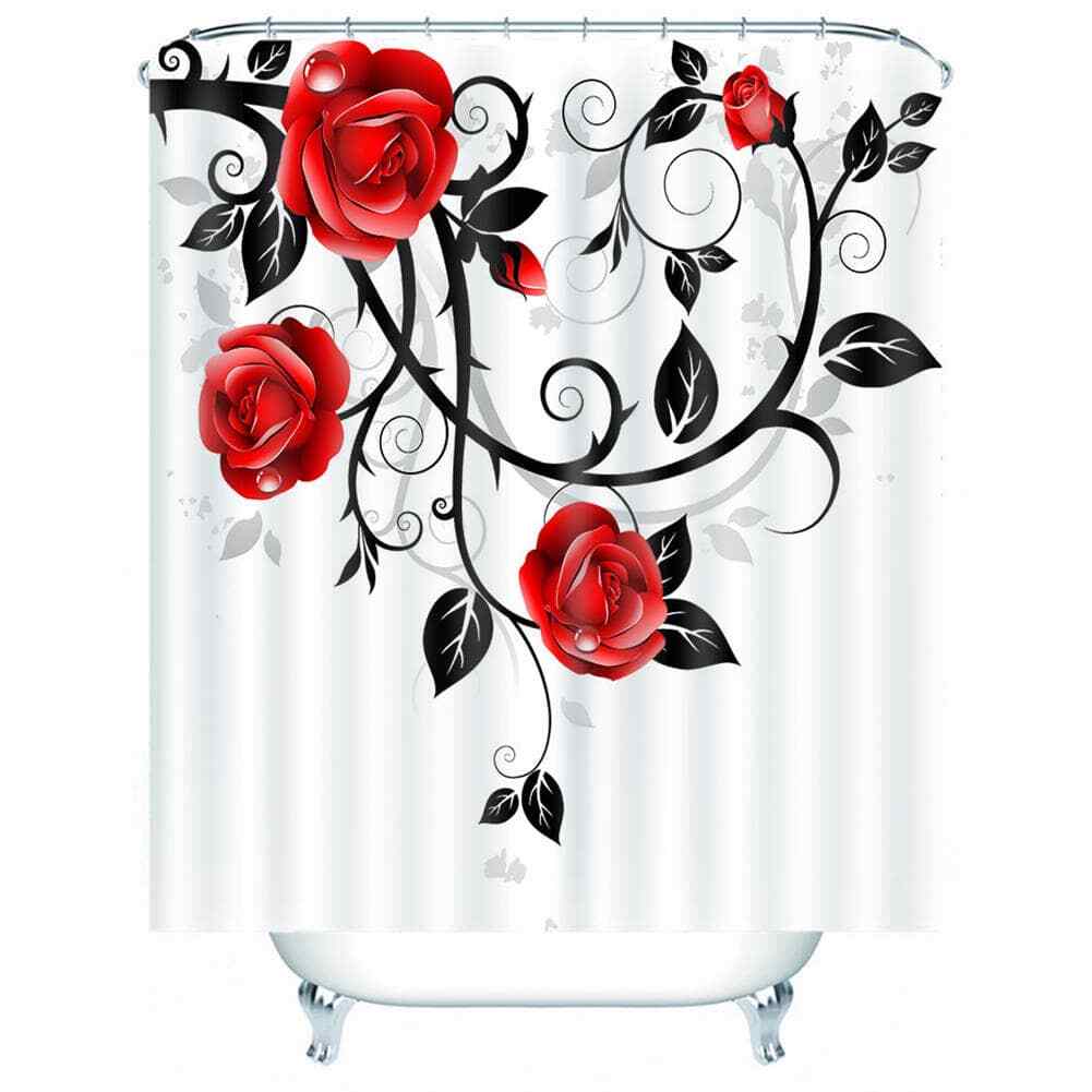 Prickly Roses Branch 3D Shower Curtain Waterproof Fabric Bathroom Decoration