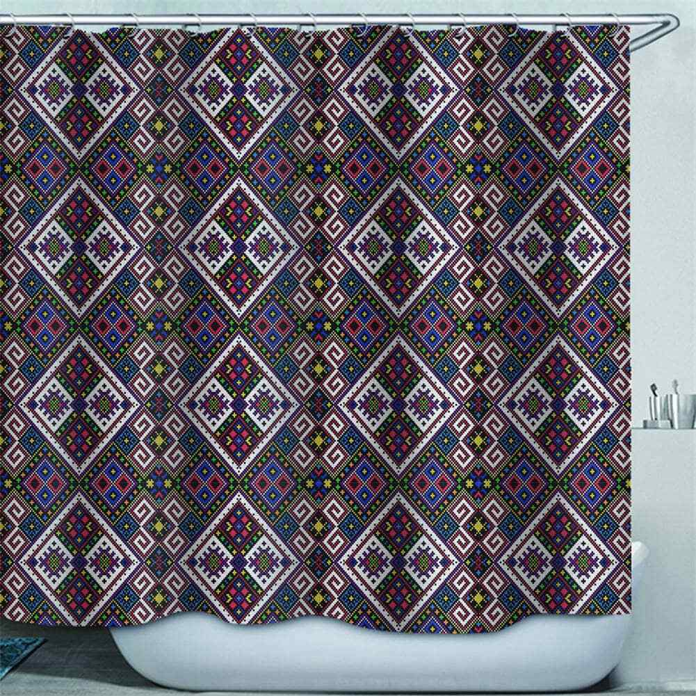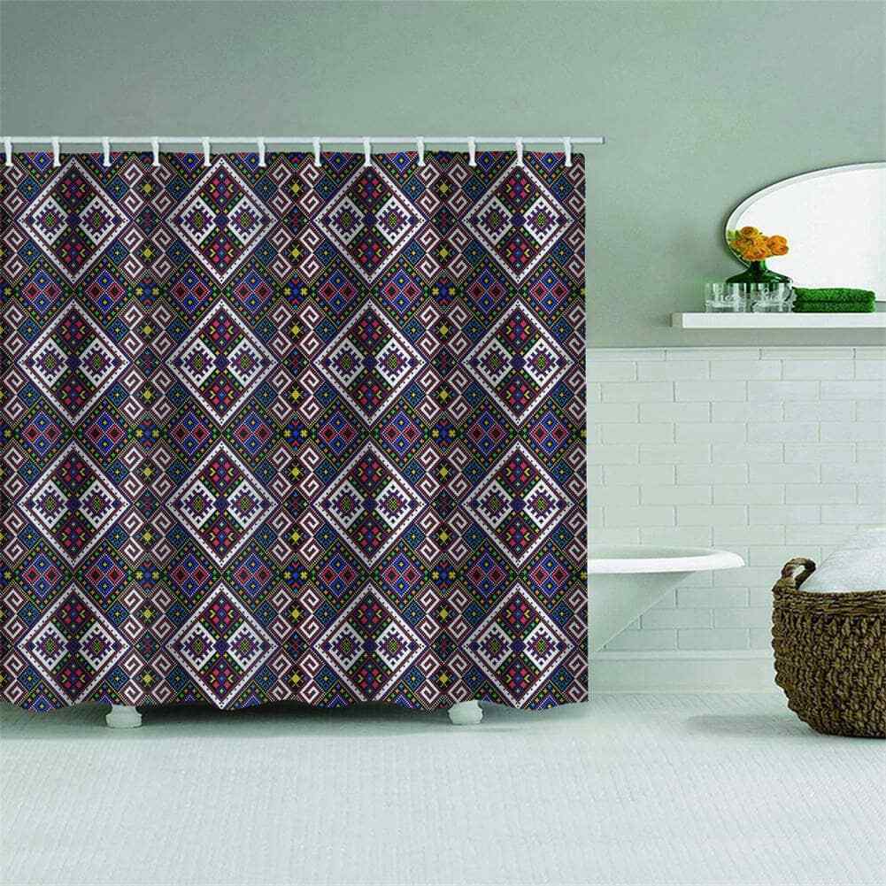 Coloured Squares 3D Shower Curtain Waterproof Fabric Bathroom Decoration