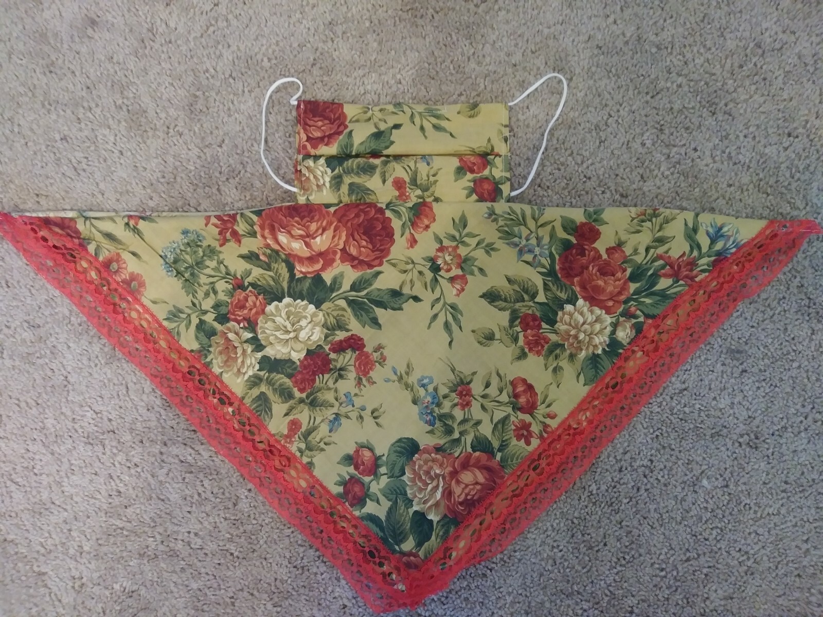 2-in-1 Scarf Face Mask - Tan with Red Floral Pattern