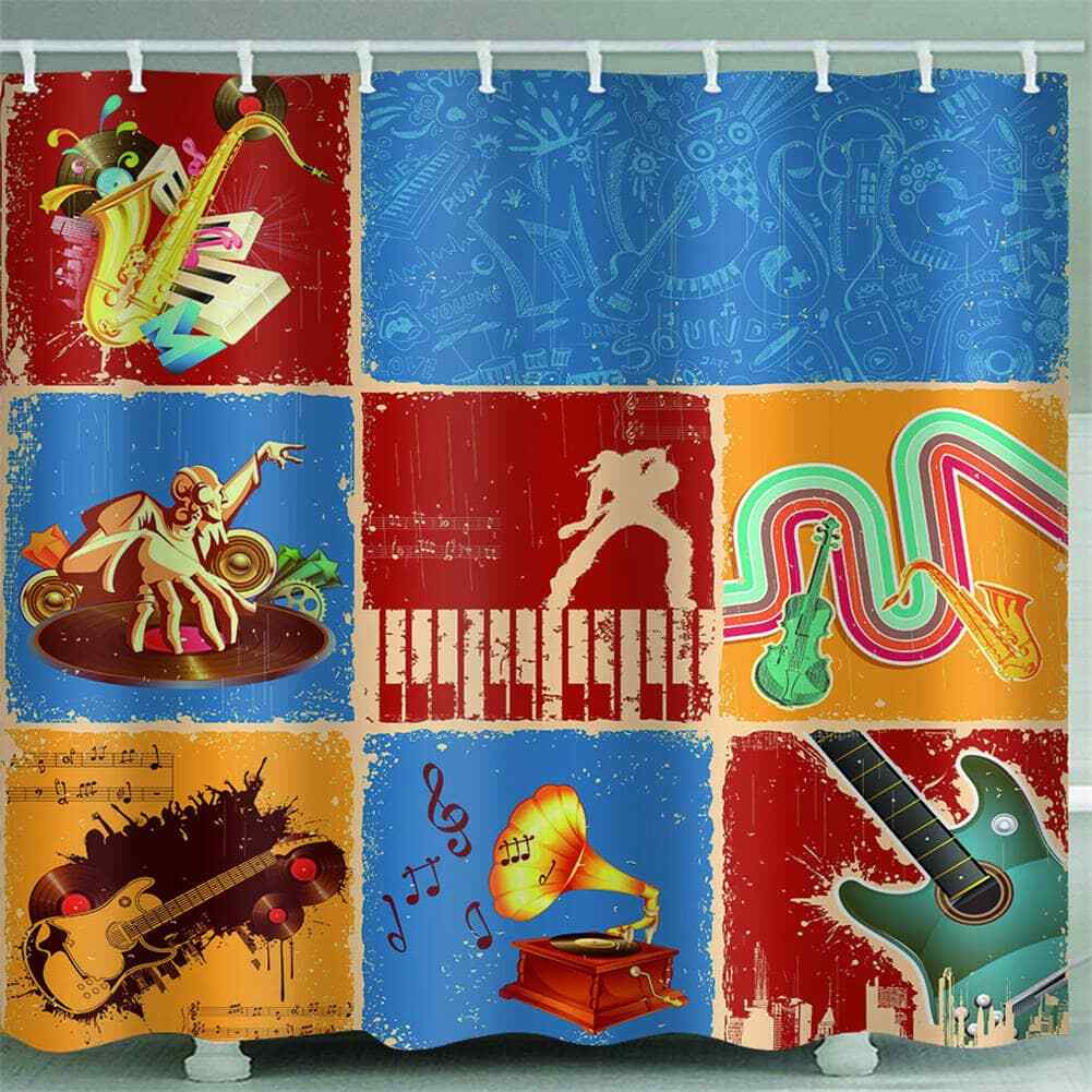 как выглядит Eight Instrument Squares 3D Shower Curtain Waterproof Fabric Bathroom Decoration фото