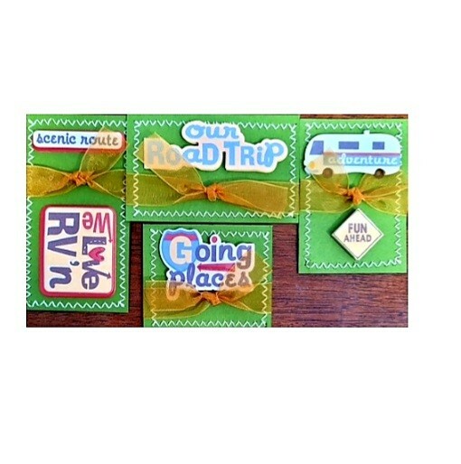 Sewn Premade Scrapbook Page/Sewn Mat Set - 12 pieces: RV Road Trip