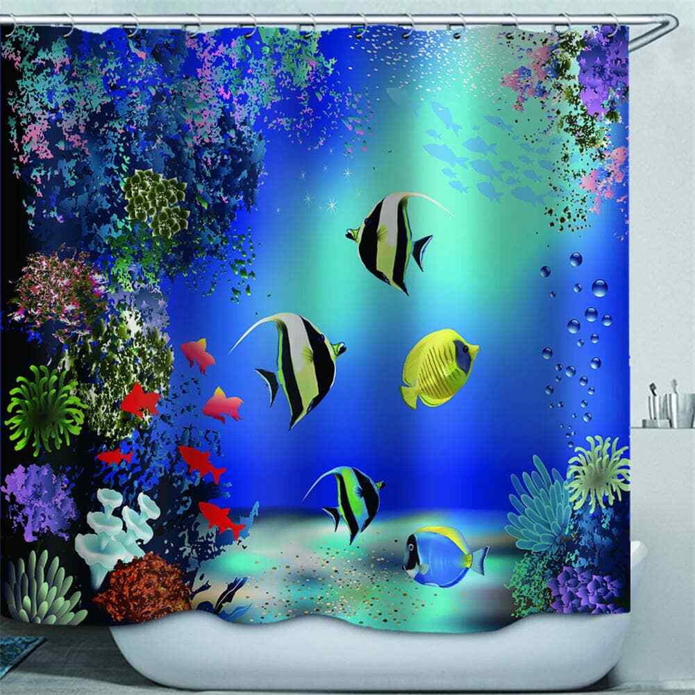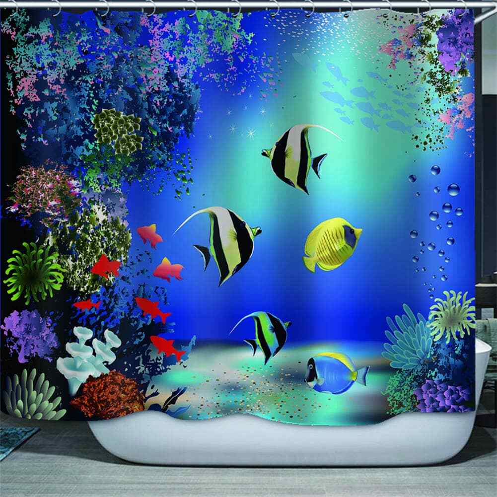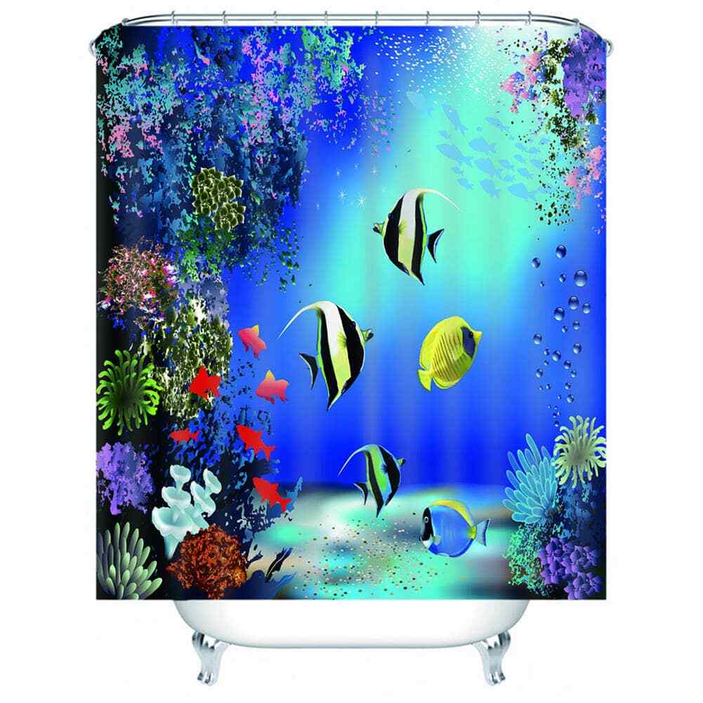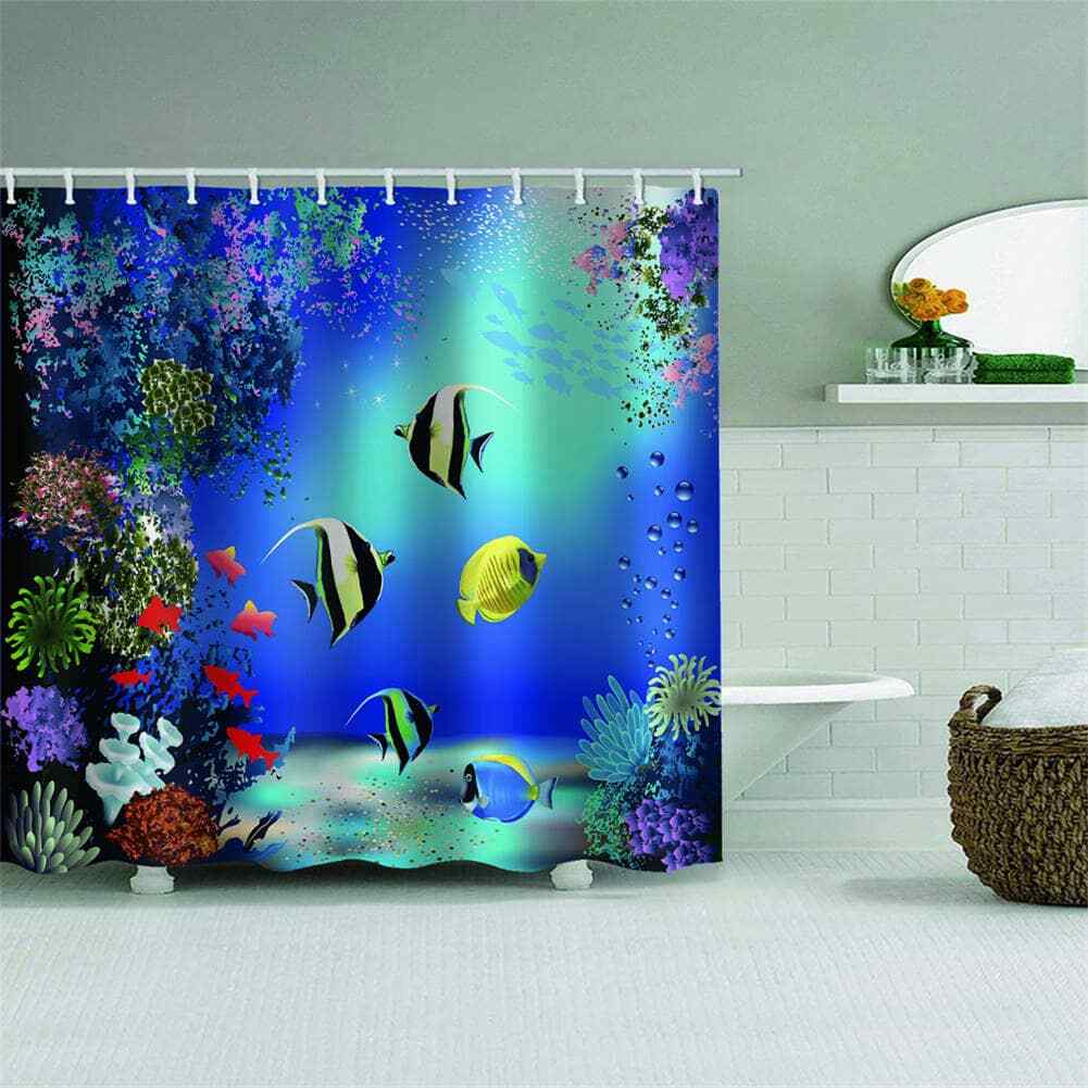 Marine Corals And Fishes 3D Shower Curtain Waterproof Fabric Bathroom Decoration