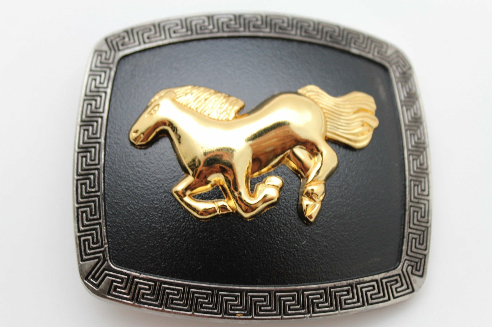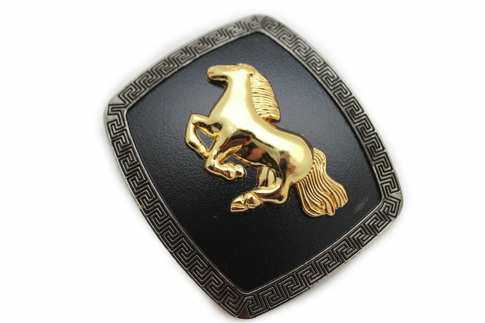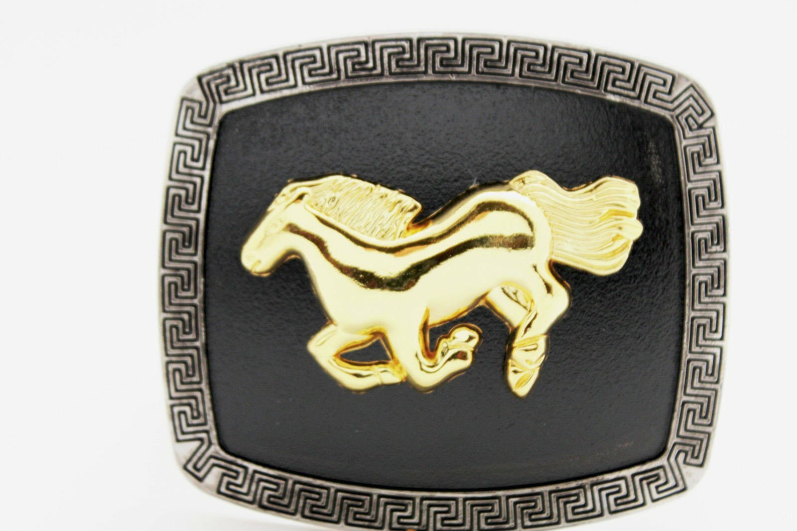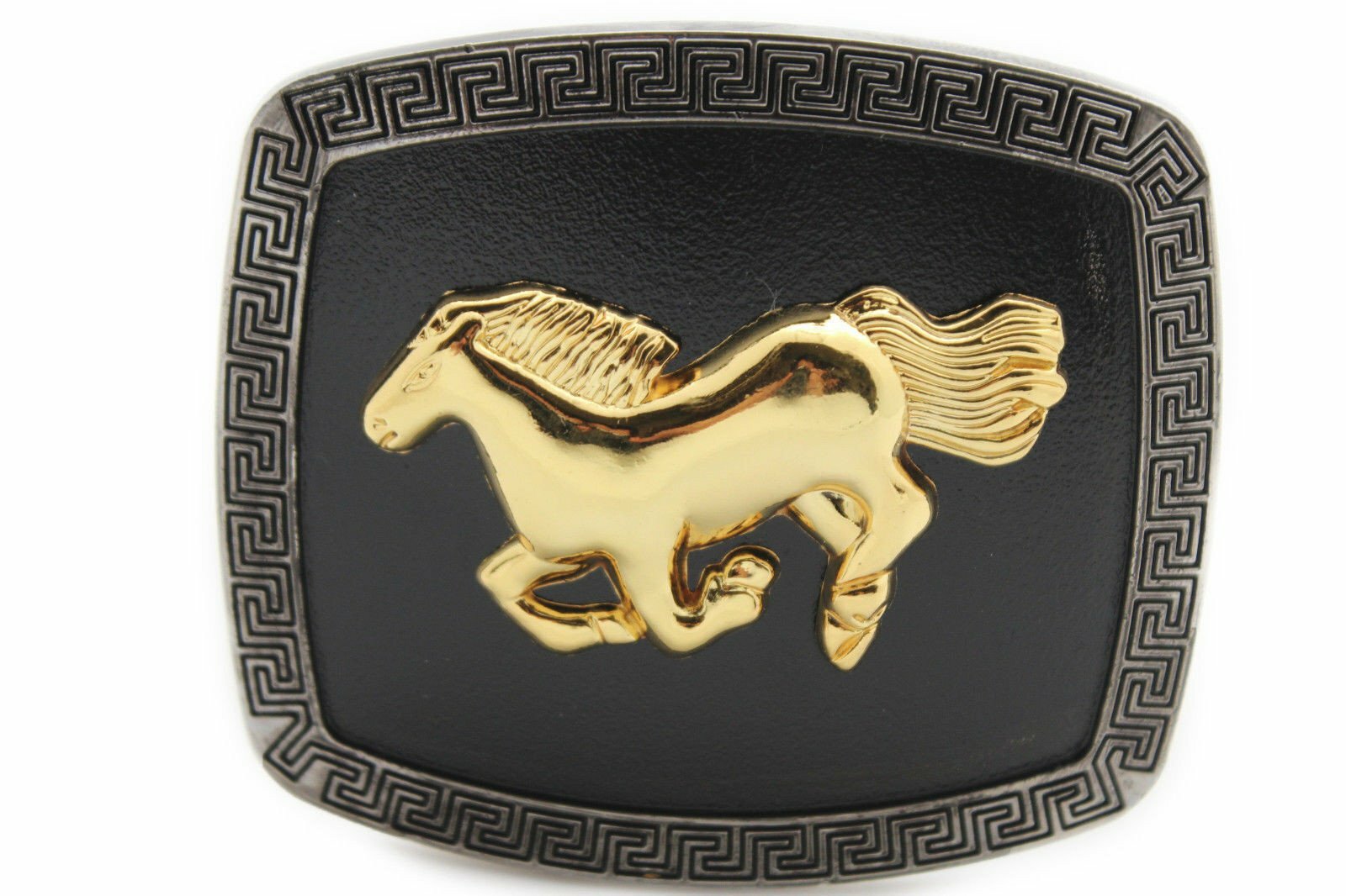 Men Casual Look Western Belt Buckle Silver Metal Square Gold Rodeo Horse Black