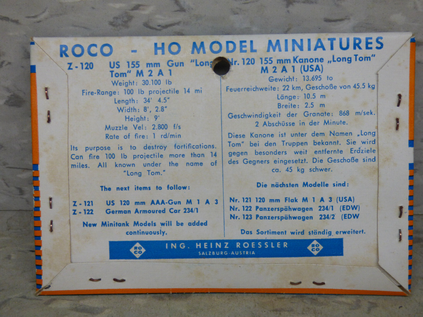 Roco Minitanks / NEW 1/87 WWII US M-2 A1 155mm Long Tom Howitzer Lot 5365K