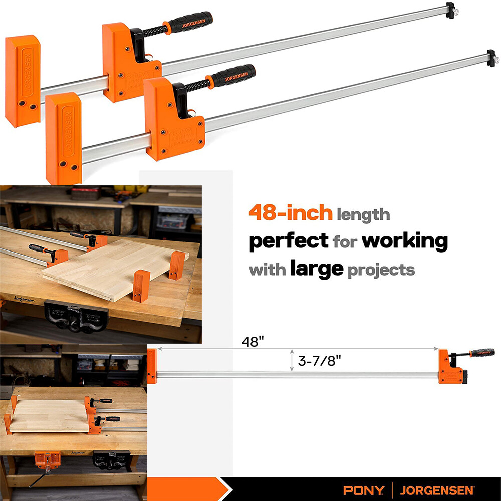 JORGENSEN 48-inch Bar Clamps 90 Cabinet Master Parallel Jaw Bar Clamp Set 2-pack