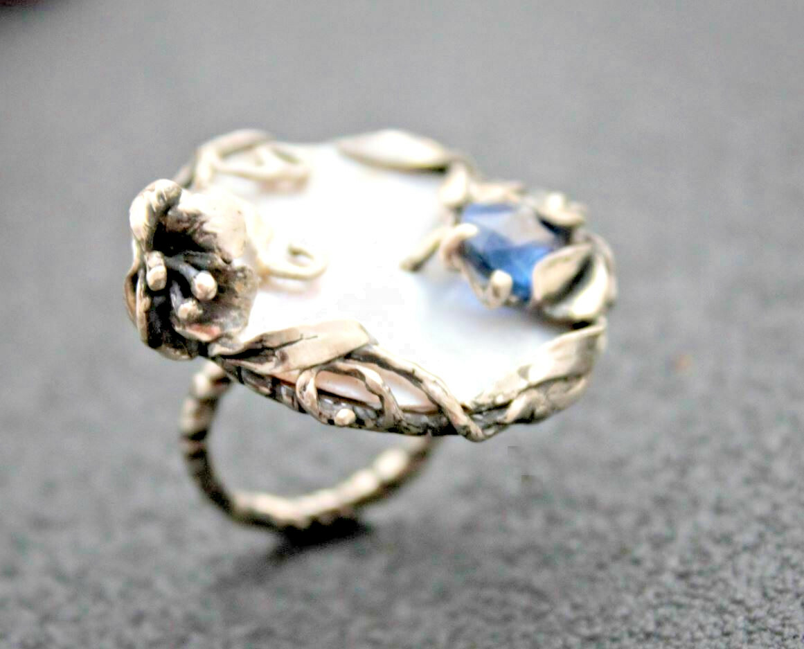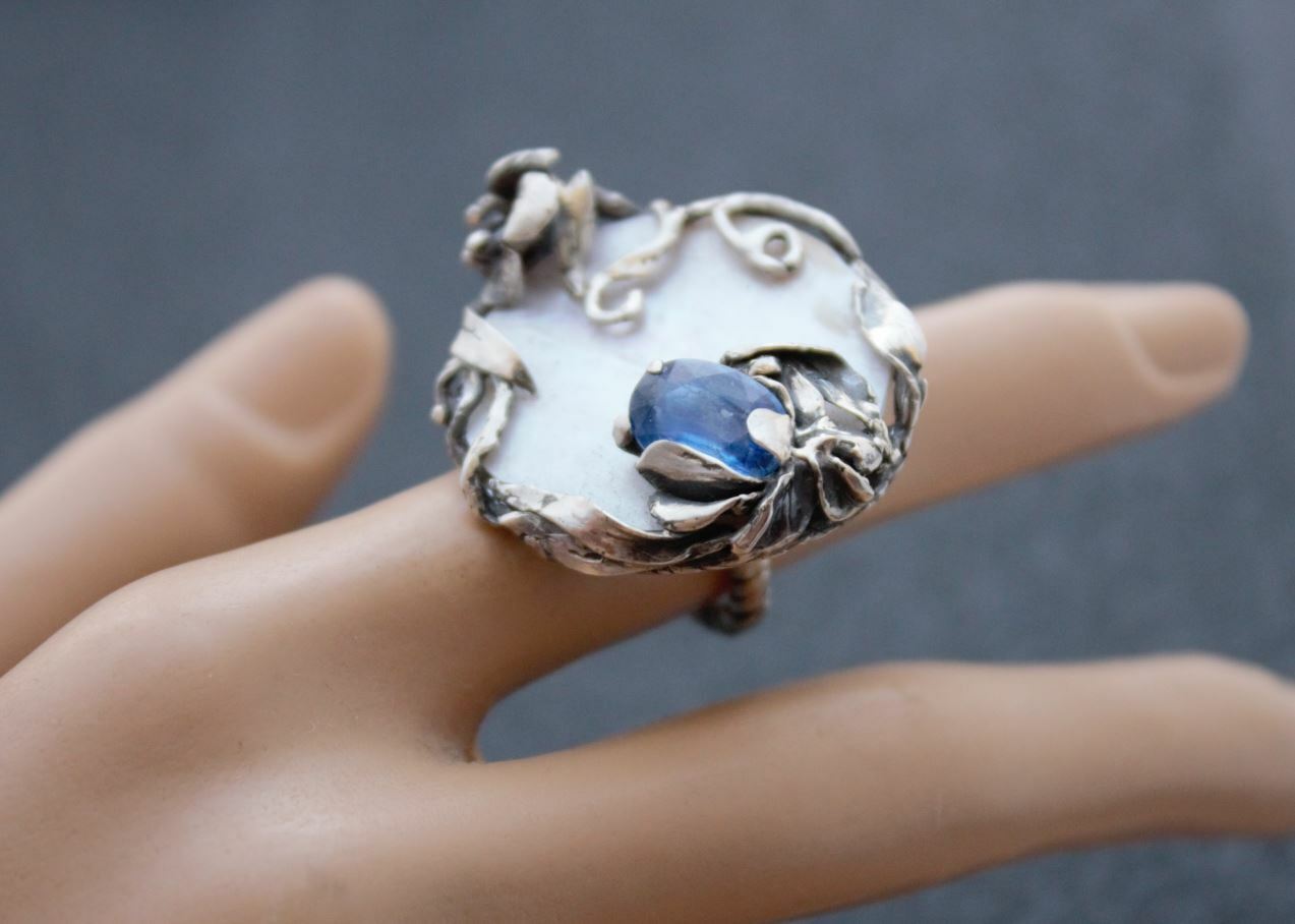 как выглядит Ring Sterling Silver Natural Nacre Ring Facet Kyanit Desire meets a new Style фото