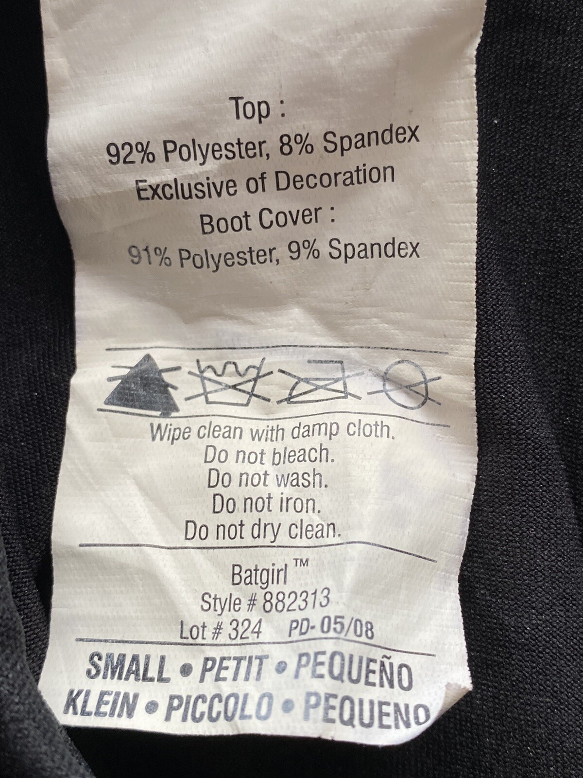 Girl s Batgirl Costume w/ Attached Cape Separate Wristbands. Child s Size Sm