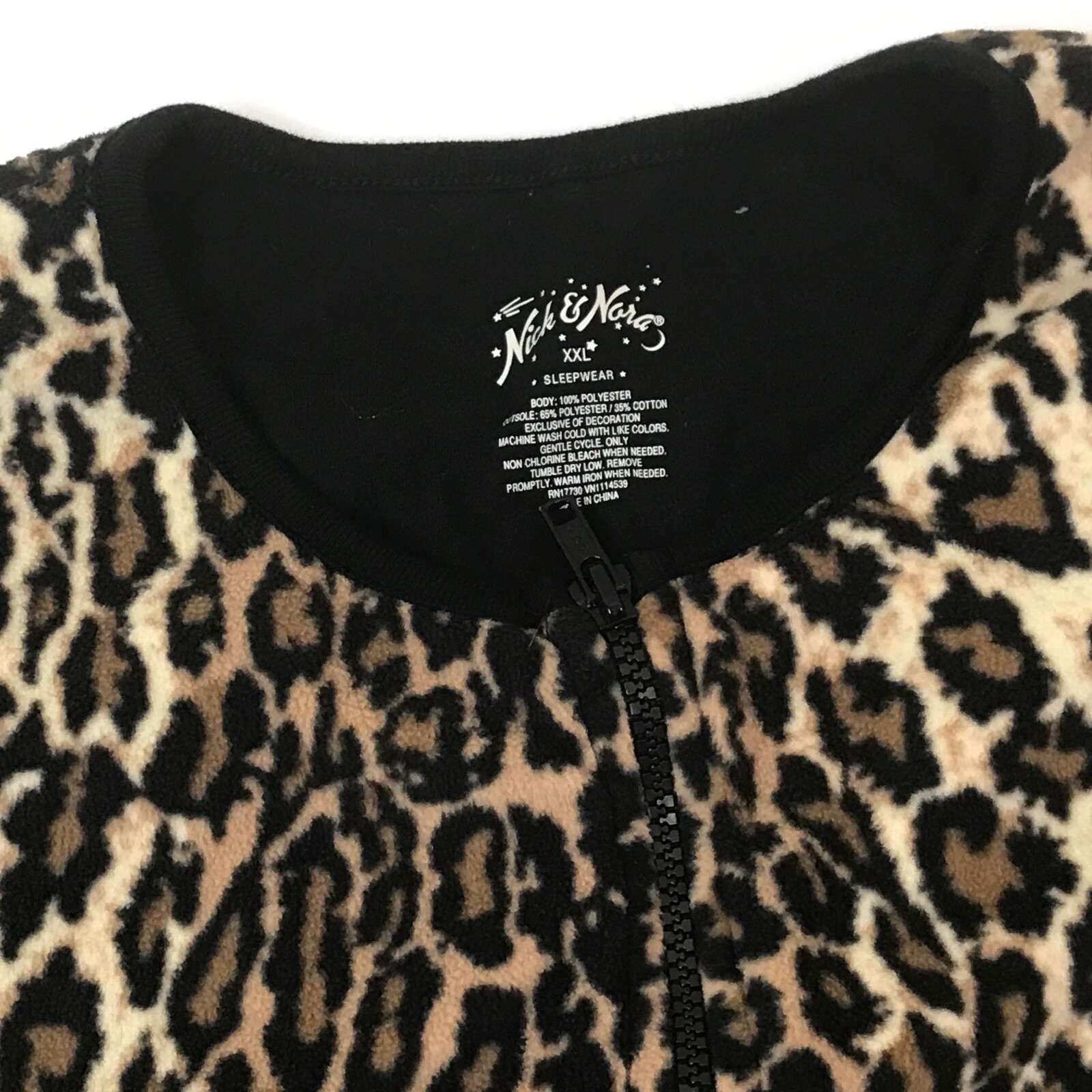 NICK NORA Footed Pajamas Womens XXL Plush Leopard Zip One Piece Sleepwear