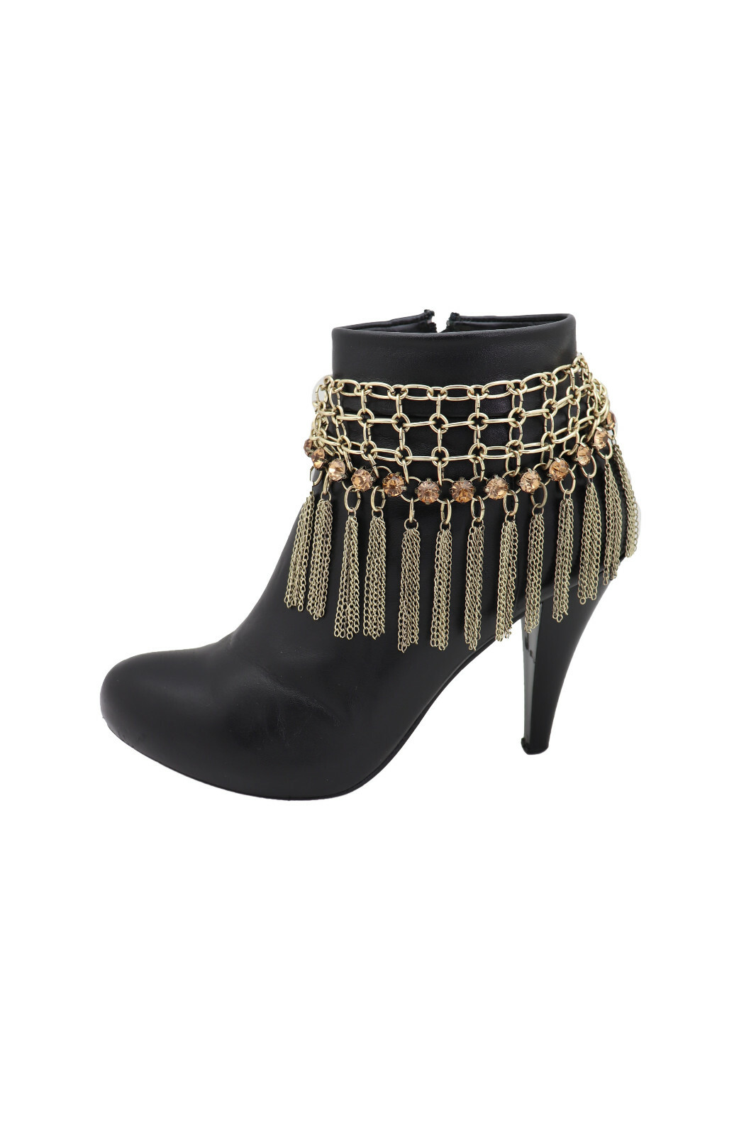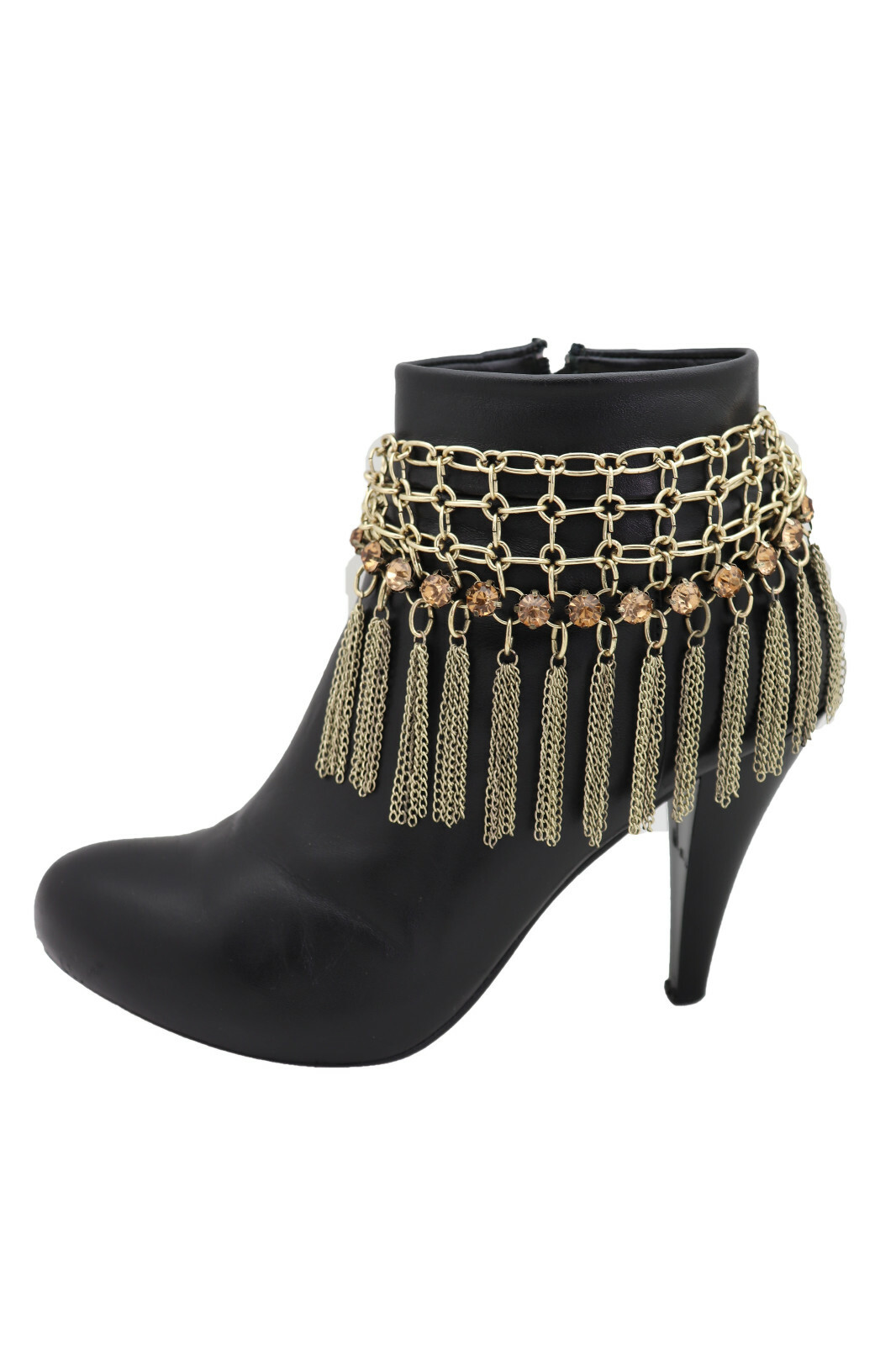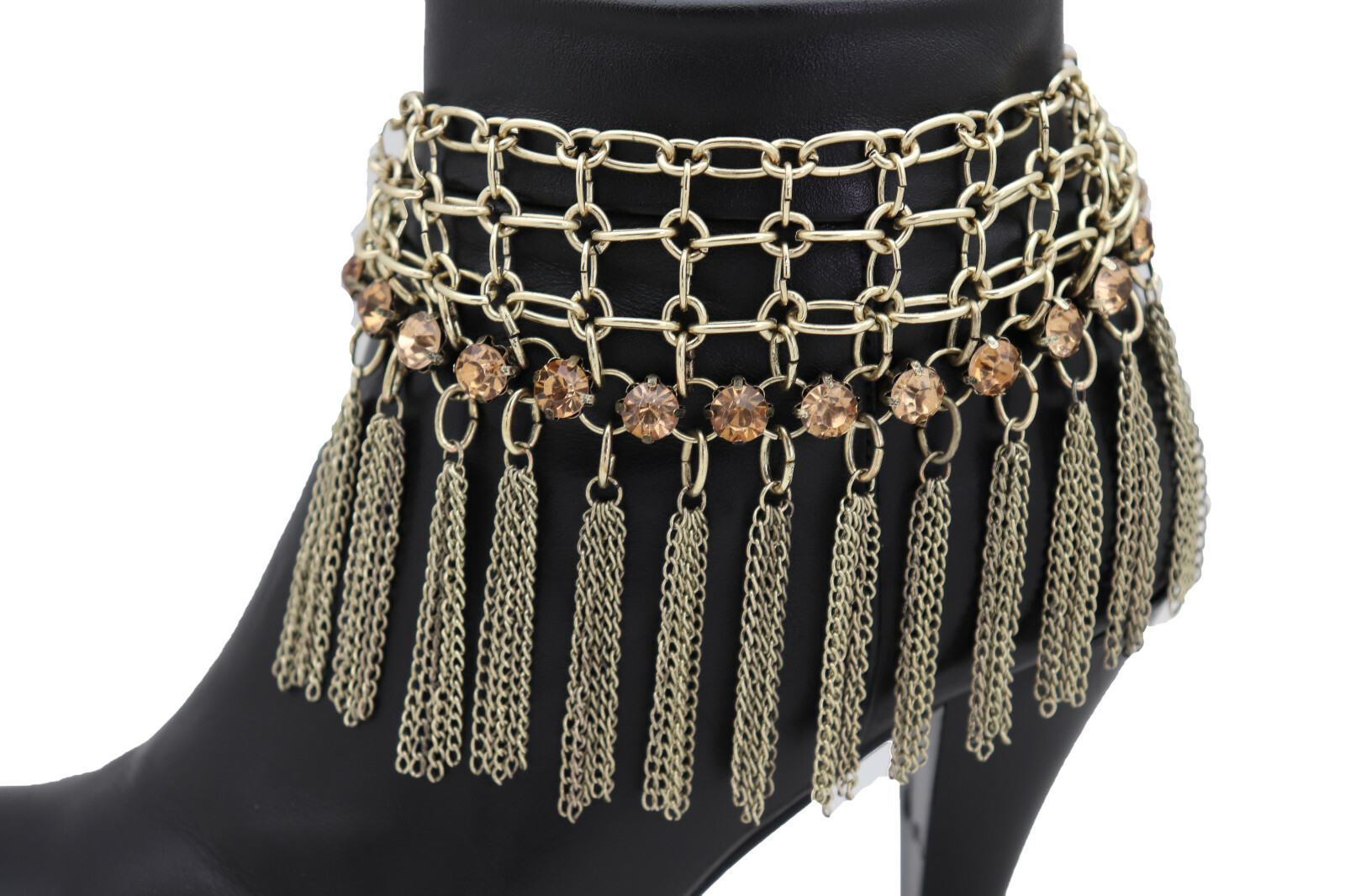 как выглядит Women Gold Color Chain Fringes Tassel Web Western Boot Band Bracelet Shoe Charm фото