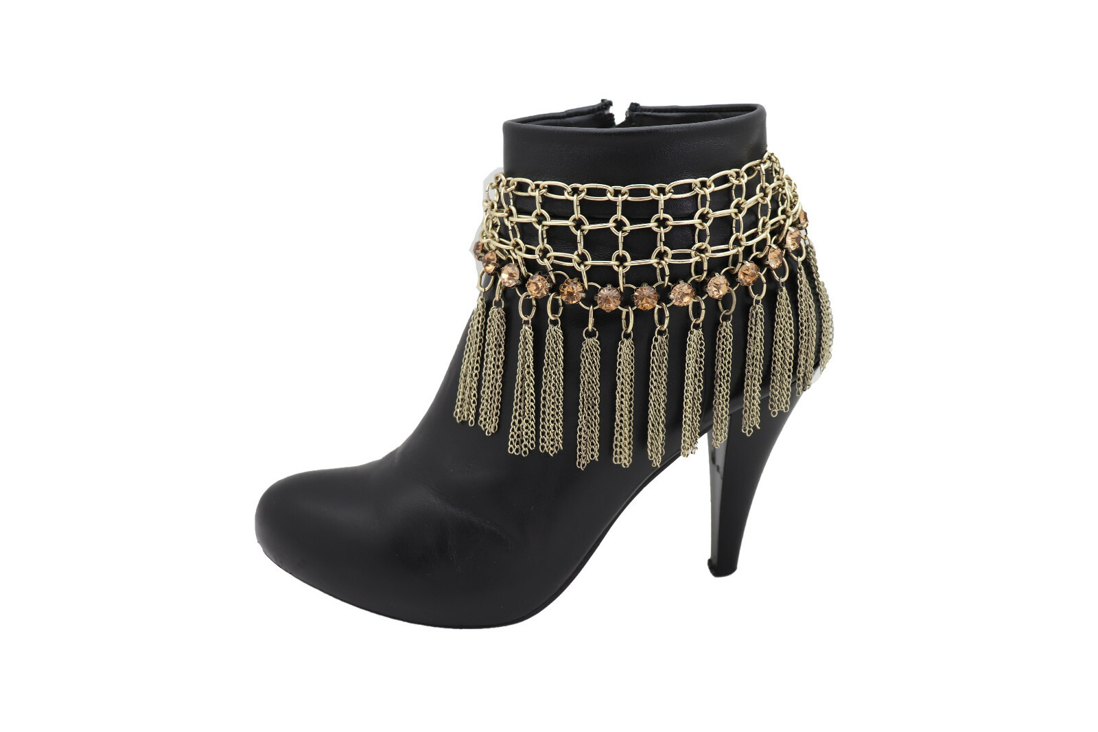 Women Gold Color Chain Fringes Tassel Web Western Boot Band Bracelet Shoe Charm