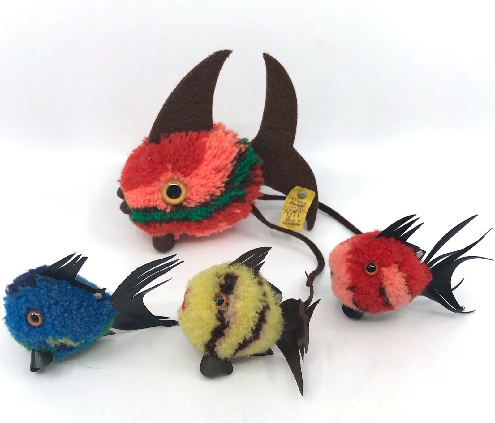 Steiff Woolen Yellow Coral Fish Wool Pom Pom 7cm 3in ID Button 1960s Vintage