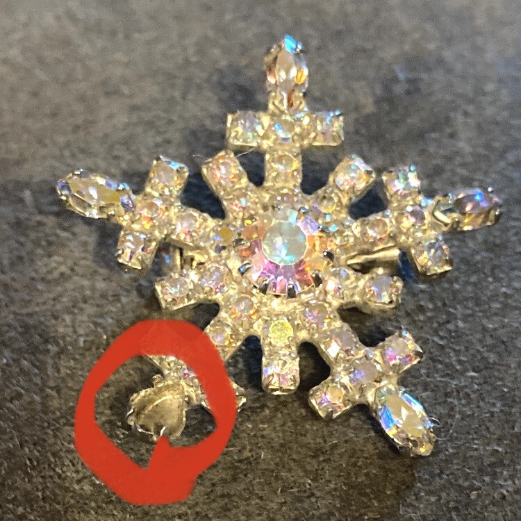 как выглядит Vintage AB Aurora Borealis Rhinestone Snowflake Pin фото