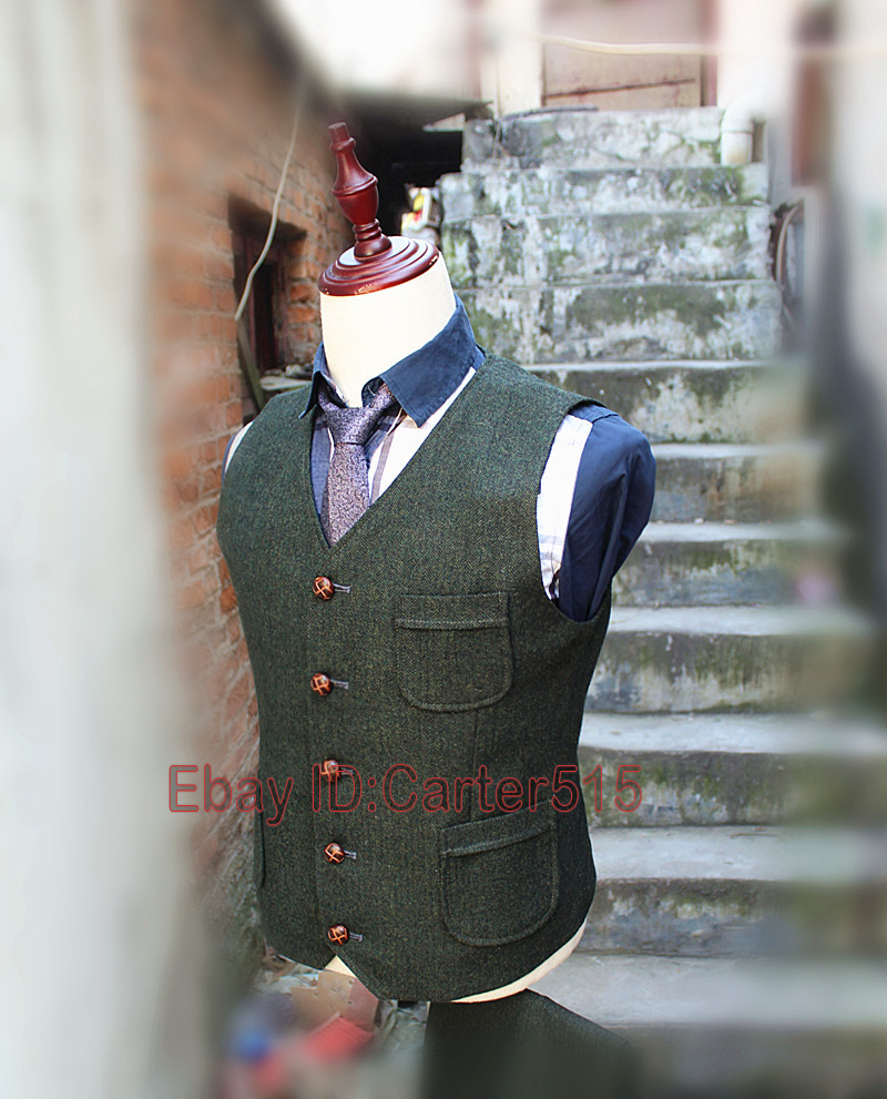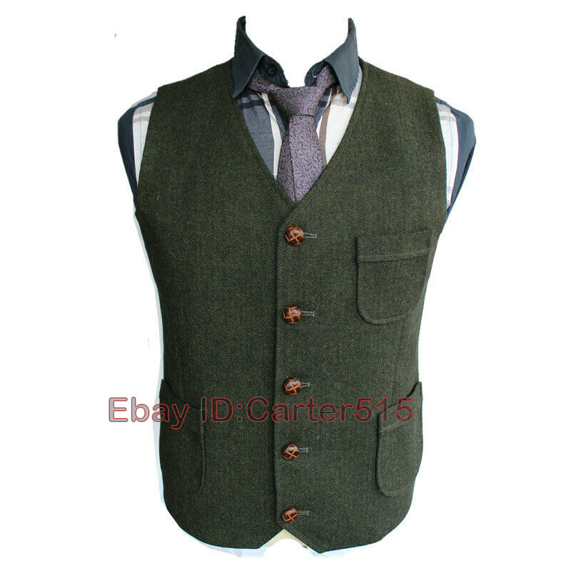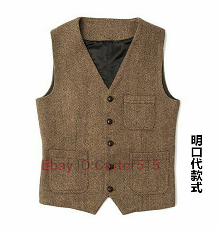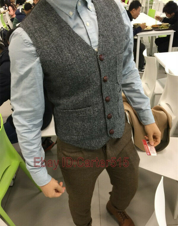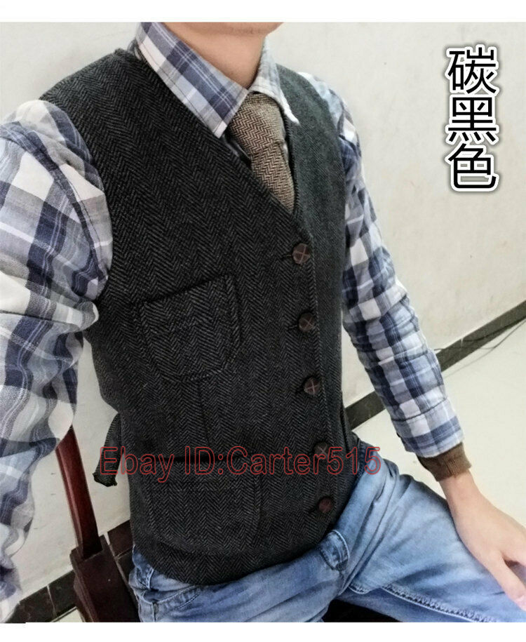 как выглядит Mens Herringbone Waistcoat British Style Tweed Wool Blend Sleeveless Vest S-5XL фото