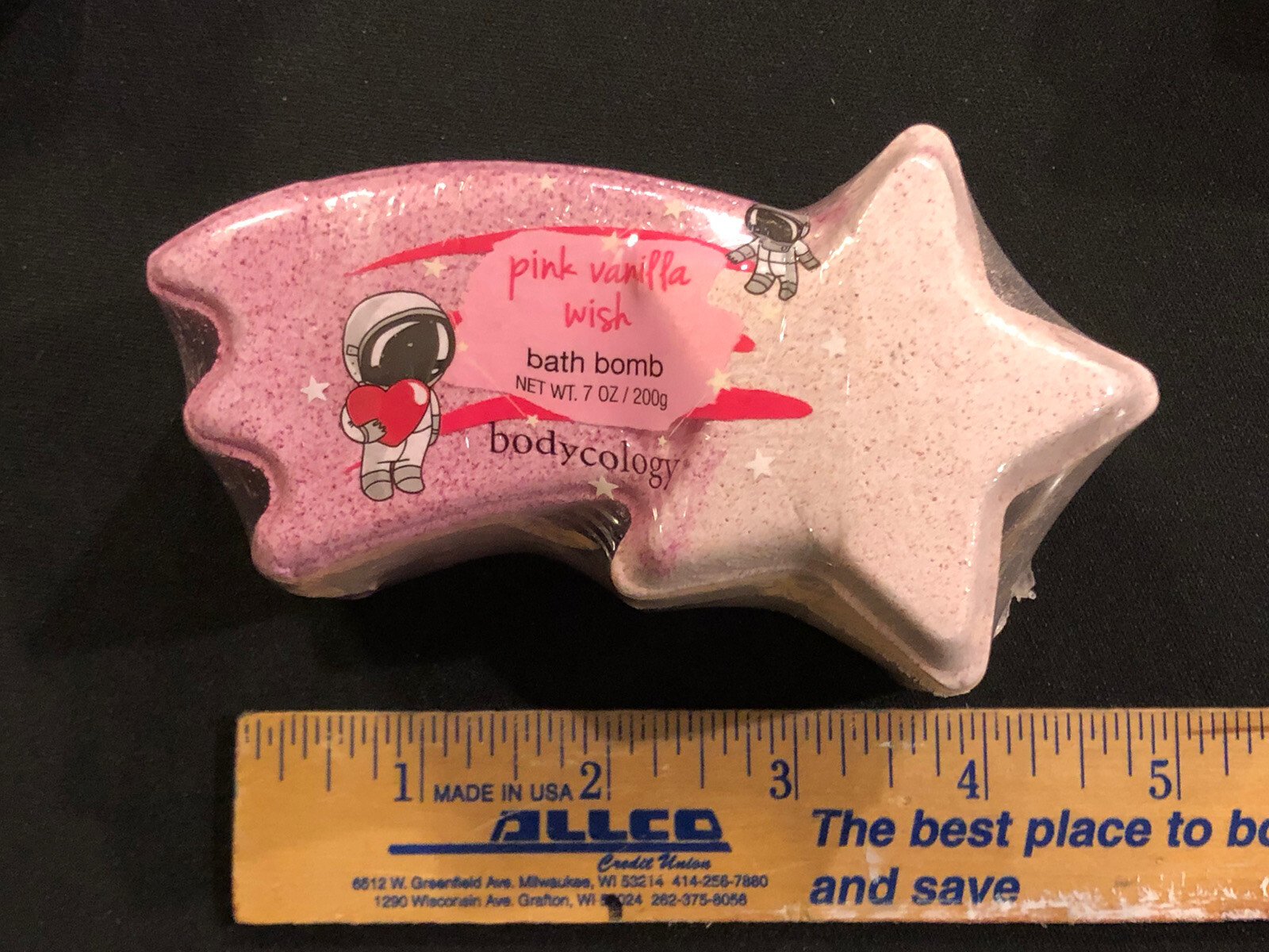4 Bodycology Pink Vanilla Wish Bath Bomb Fizzy Shooting Star 7 oz Valentine Gift
